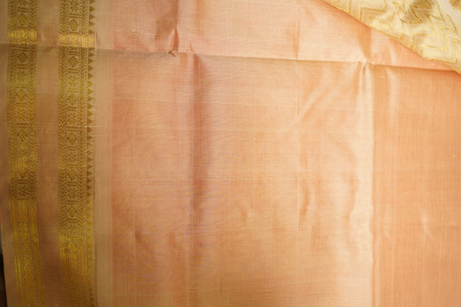 Always air dry the saree in shade. Never wring the sari or use it in the washing machine or dryer. Never rub the sari vigorously.