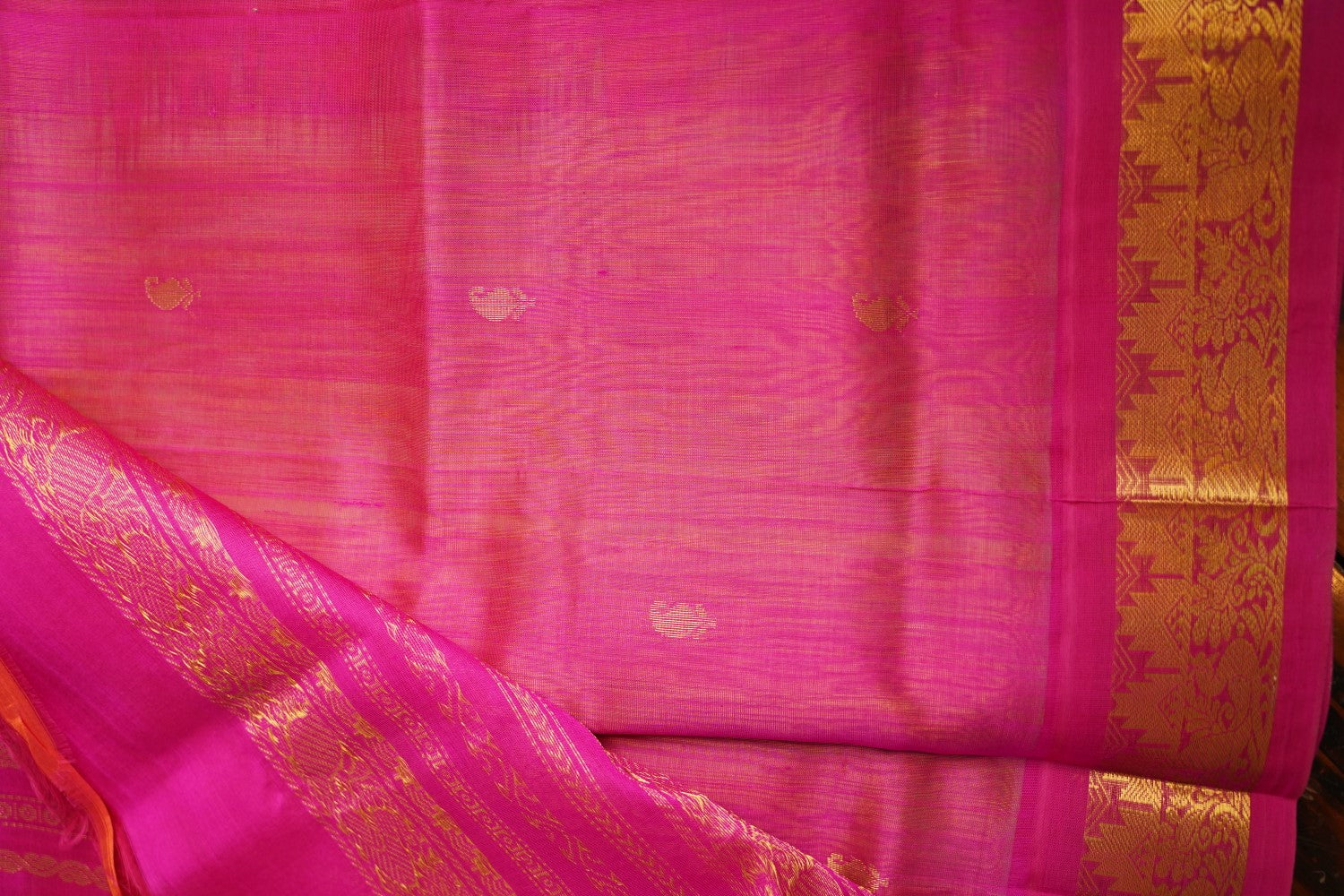 For Silk & Silk Cotton Sarees, Always dry clean for the first wash. For subsequent washes, if dry cleaning is not possible, gently hand wash in cold water with soapnut or silk-suitable detergent or baby shampoo.