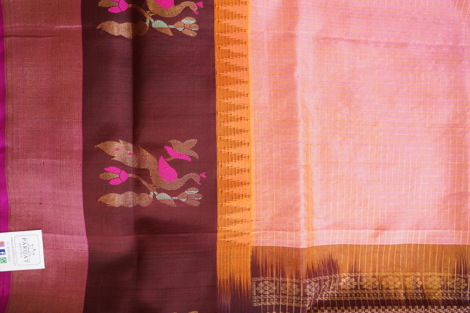 All Saree Photos are taken under sunlight. We do not modify the Pictures Digitally. Utmost Care and Effort is taken to achieve the exact colors of the sarees in the Pictures. All Pictures are intended to be best viewed on High Resolution Displays. The color rendition of the products may vary according to the ambient lighting conditions and the color calibration of digital LED devices. If you would like more clarity before your purchase, please contact us at +91 95000 94822 (Mon - Sat 9:30 am to 8:30 pm IST) or email us at parijatcollections@gmail.com