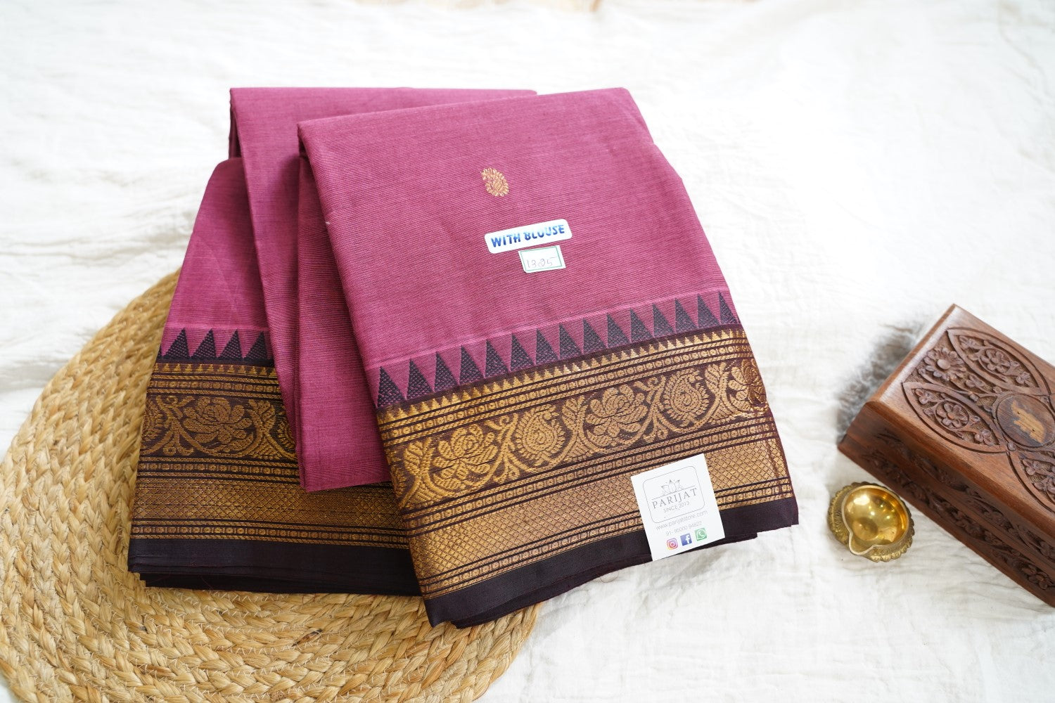 All Saree Photos are taken under sunlight. We do not modify the Pictures Digitally. Utmost Care and Effort is taken to achieve the exact colors of the sarees in the Pictures. All Pictures are intended to be best viewed on High Resolution Displays. The color rendition of the products may vary according to the ambient lighting conditions and the color calibration of digital LED devices. If you would like more clarity before your purchase, please contact us at +91 95000 94822 (Mon - Sat 9:30 am to 8:30 pm IST) or email us at parijatcollections@gmail.com