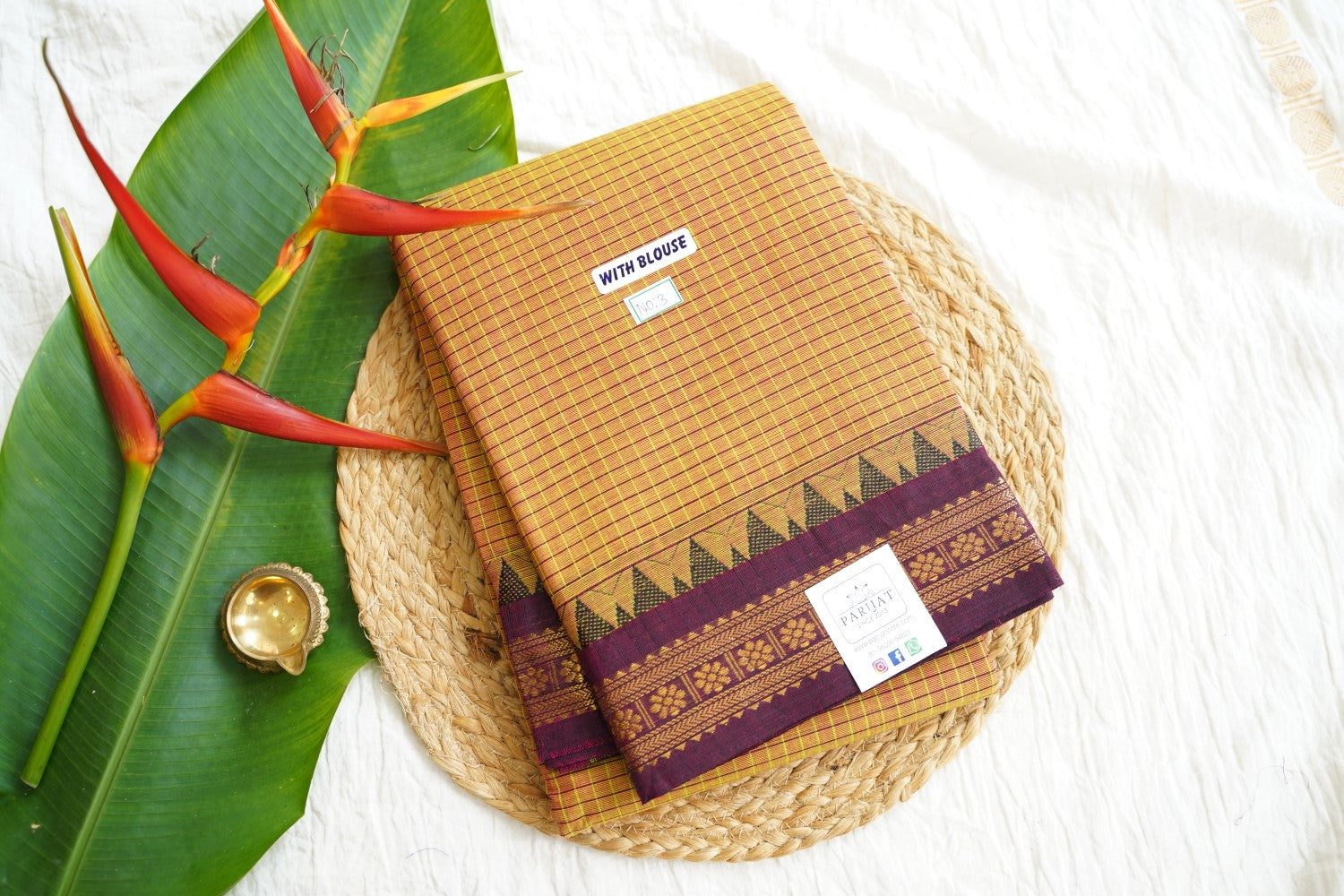 For Silk & Silk Cotton Sarees, Always dry clean for the first wash. For subsequent washes, if dry cleaning is not possible, gently hand wash in cold water with soapnut or silk-suitable detergent or baby shampoo.
