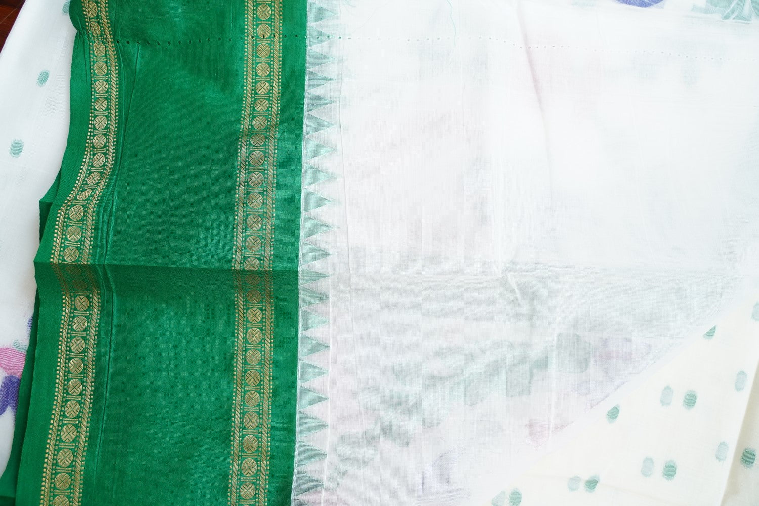 Always air dry the saree in shade. Never wring the sari or use it in the washing machine or dryer. Never rub the sari vigorously.