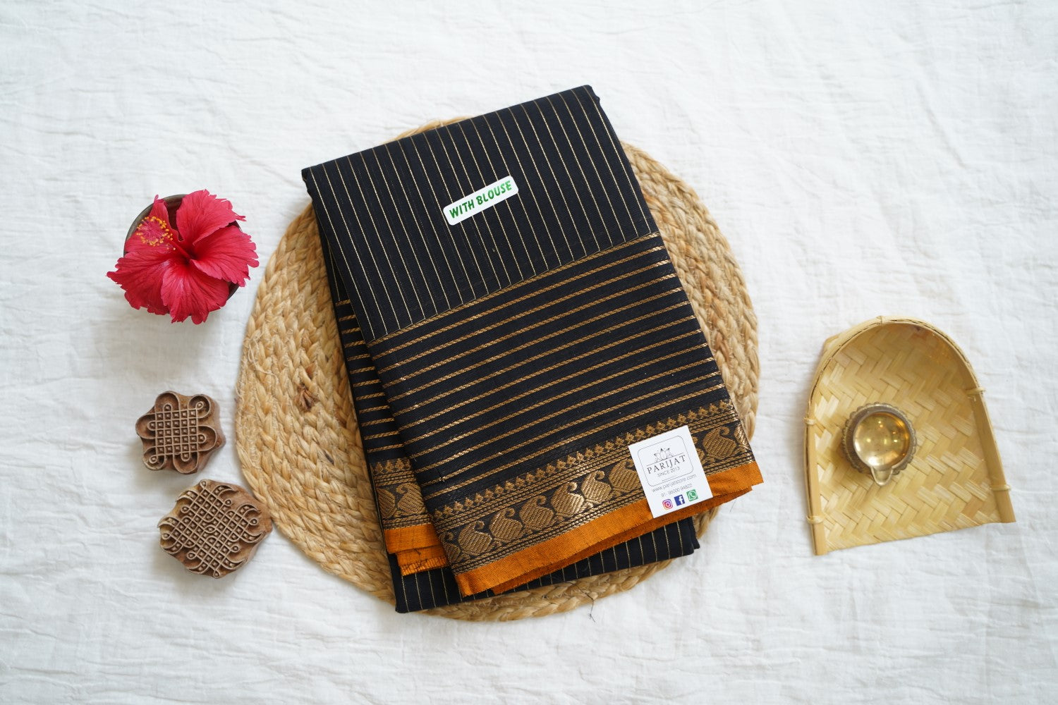 All Saree Photos are taken under sunlight. We do not modify the Pictures Digitally. Utmost Care and Effort is taken to achieve the exact colors of the sarees in the Pictures. All Pictures are intended to be best viewed on High Resolution Displays. The color rendition of the products may vary according to the ambient lighting conditions and the color calibration of digital LED devices. If you would like more clarity before your purchase, please contact us at +91 95000 94822 (Mon - Sat 9:30 am to 8:30 pm IST) or email us at parijatcollections@gmail.com