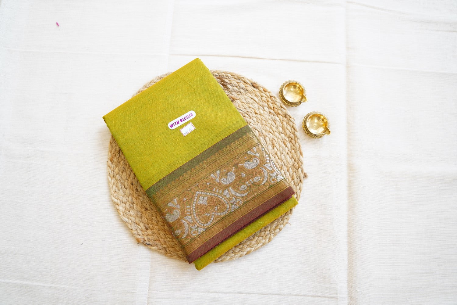 For Silk & Silk Cotton Sarees, Always dry clean for the first wash. For subsequent washes, if dry cleaning is not possible, gently hand wash in cold water with soapnut or silk-suitable detergent or baby shampoo.