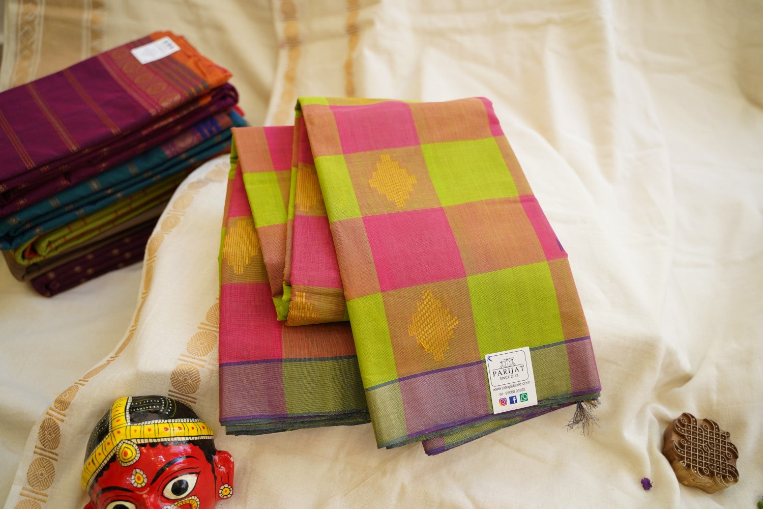 All Saree Photos are taken under sunlight. We do not modify the Pictures Digitally. Utmost Care and Effort is taken to achieve the exact colors of the sarees in the Pictures. All Pictures are intended to be best viewed on High Resolution Displays. The color rendition of the products may vary according to the ambient lighting conditions and the color calibration of digital LED devices. If you would like more clarity before your purchase, please contact us at +91 95000 94822 (Mon - Sat 9:30 am to 8:30 pm IST) or email us at parijatcollections@gmail.com