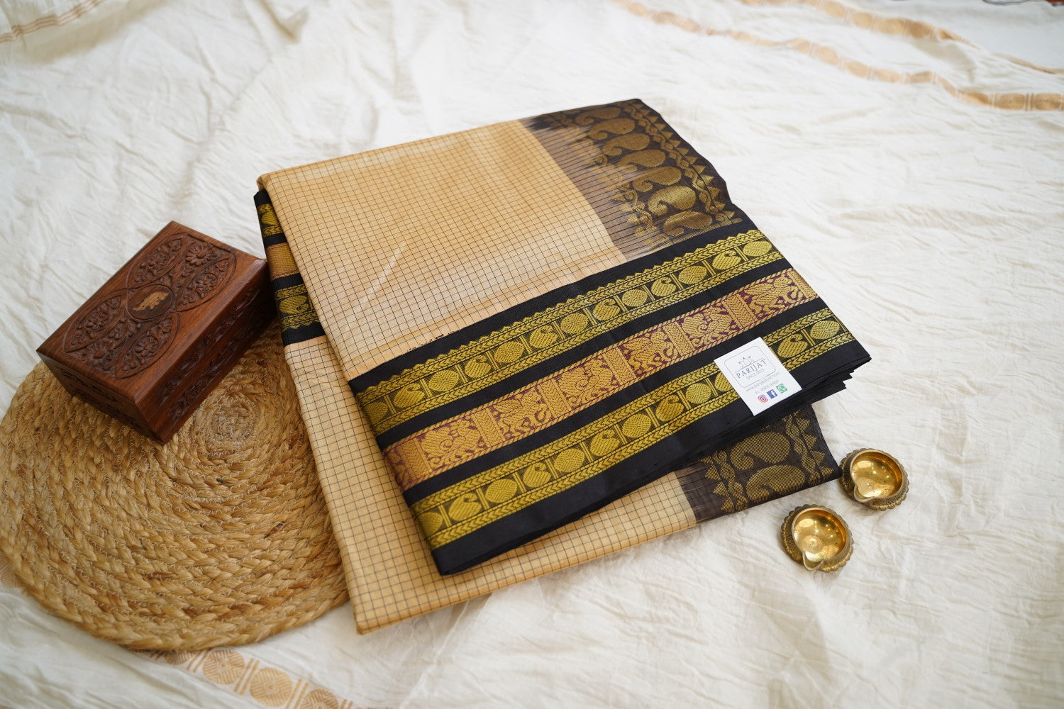 For Silk & Silk Cotton Sarees, Always dry clean for the first wash. For subsequent washes, if dry cleaning is not possible, gently hand wash in cold water with soapnut or silk-suitable detergent or baby shampoo.