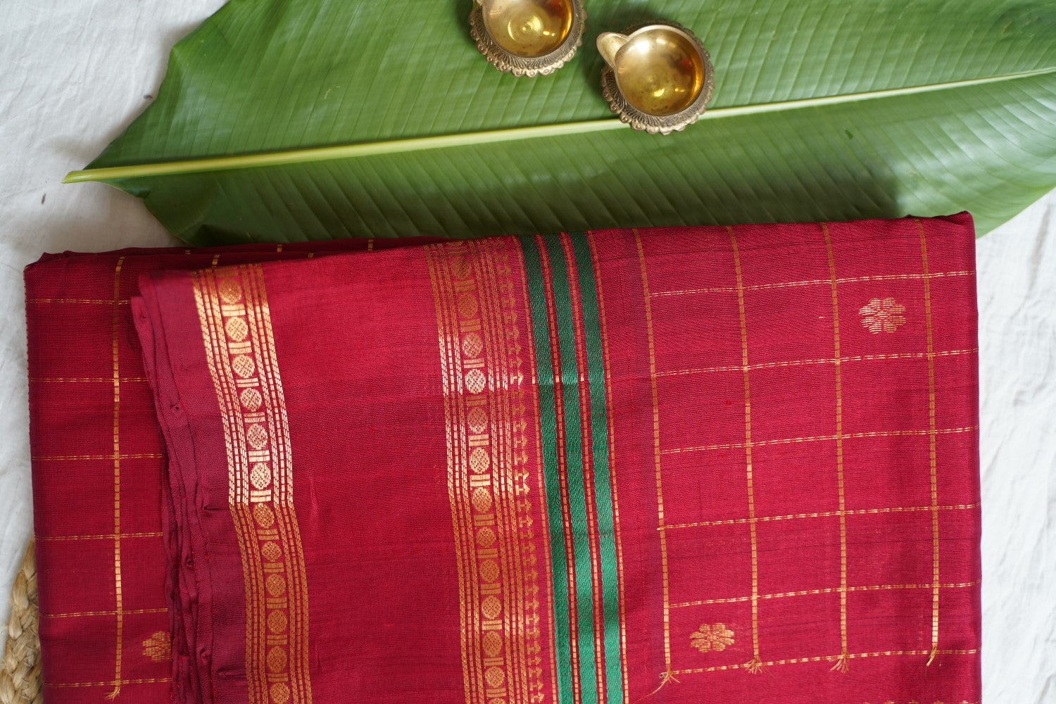For Silk & Silk Cotton Sarees, Always dry clean for the first wash. For subsequent washes, if dry cleaning is not possible, gently hand wash in cold water with soapnut or silk-suitable detergent or baby shampoo.