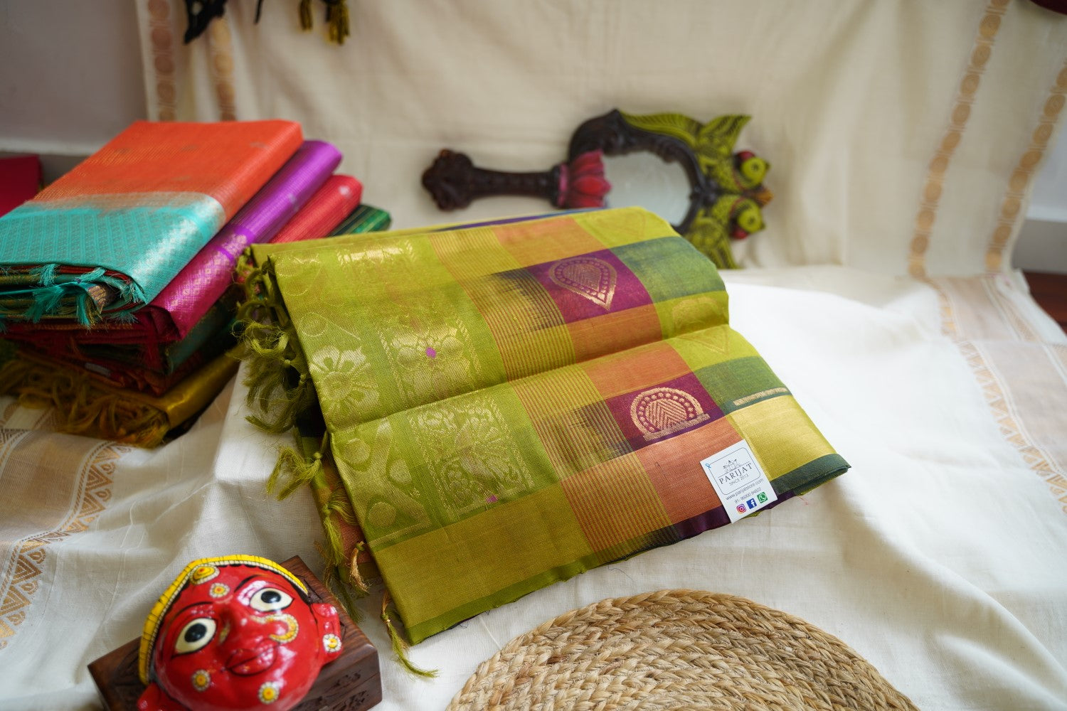 All Saree Photos are taken under sunlight. We do not modify the Pictures Digitally. Utmost Care and Effort is taken to achieve the exact colors of the sarees in the Pictures. All Pictures are intended to be best viewed on High Resolution Displays. The color rendition of the products may vary according to the ambient lighting conditions and the color calibration of digital LED devices. If you would like more clarity before your purchase, please contact us at +91 95000 94822 (Mon - Sat 9:30 am to 8:30 pm IST) or email us at parijatcollections@gmail.com