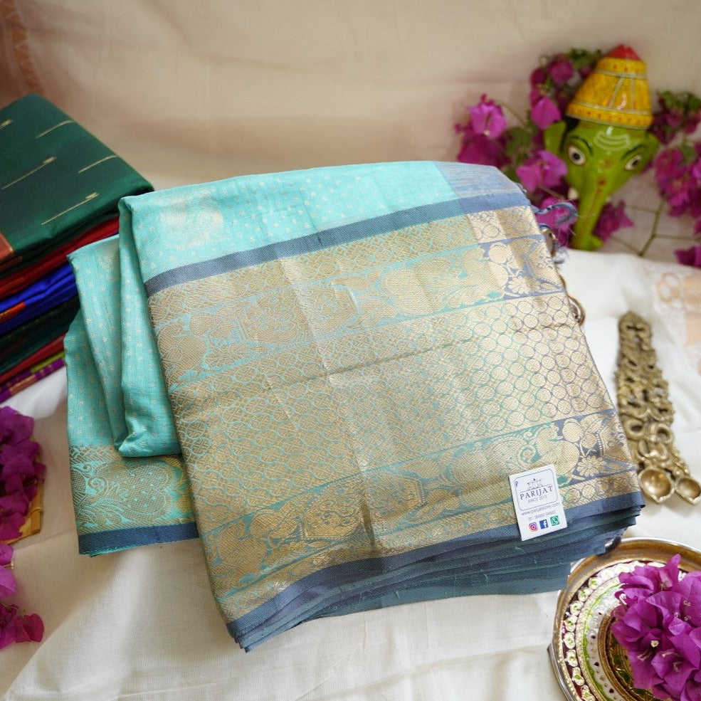 For Silk & Silk Cotton Sarees, Always dry clean for the first wash. For subsequent washes, if dry cleaning is not possible, gently hand wash in cold water with soapnut or silk-suitable detergent or baby shampoo.