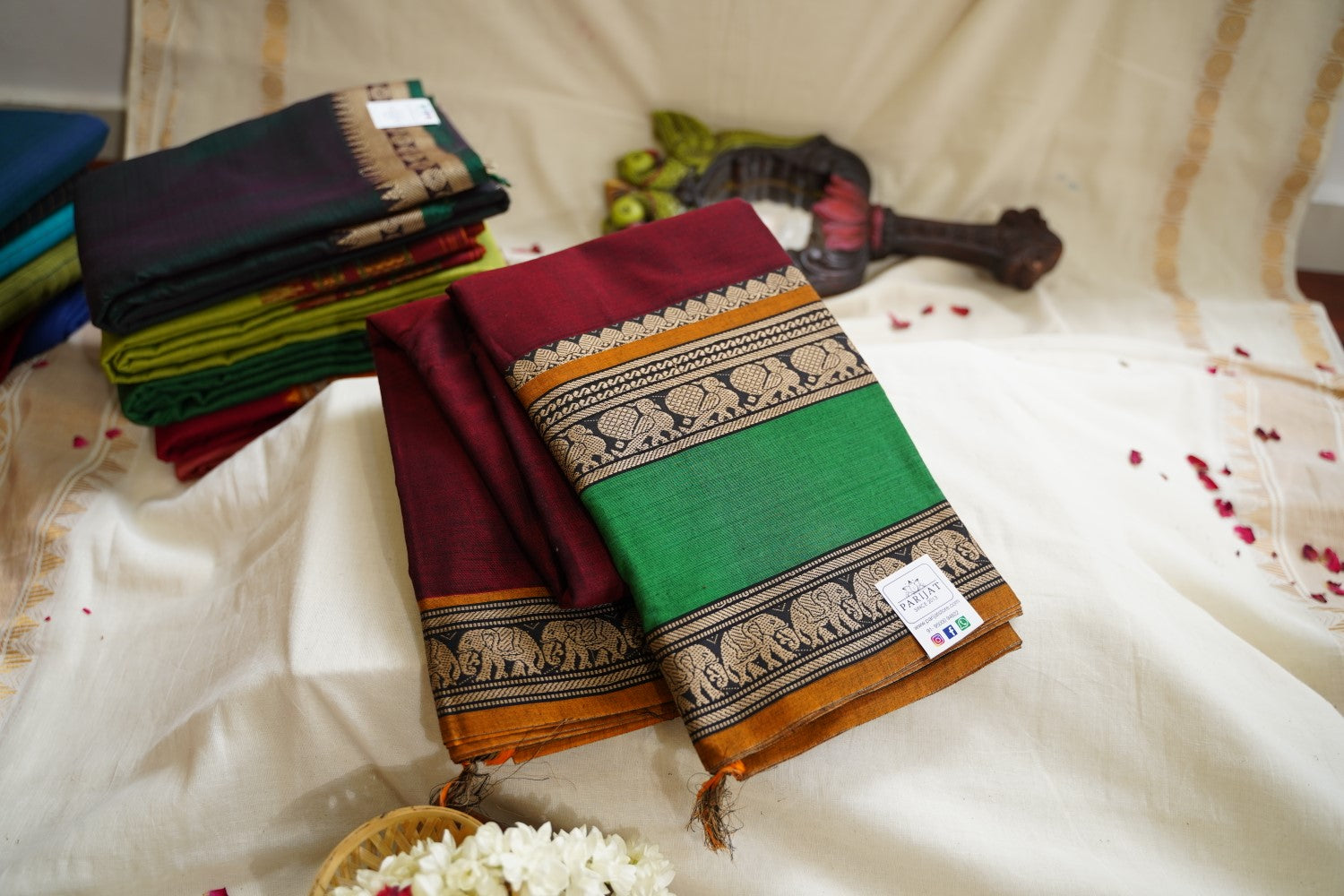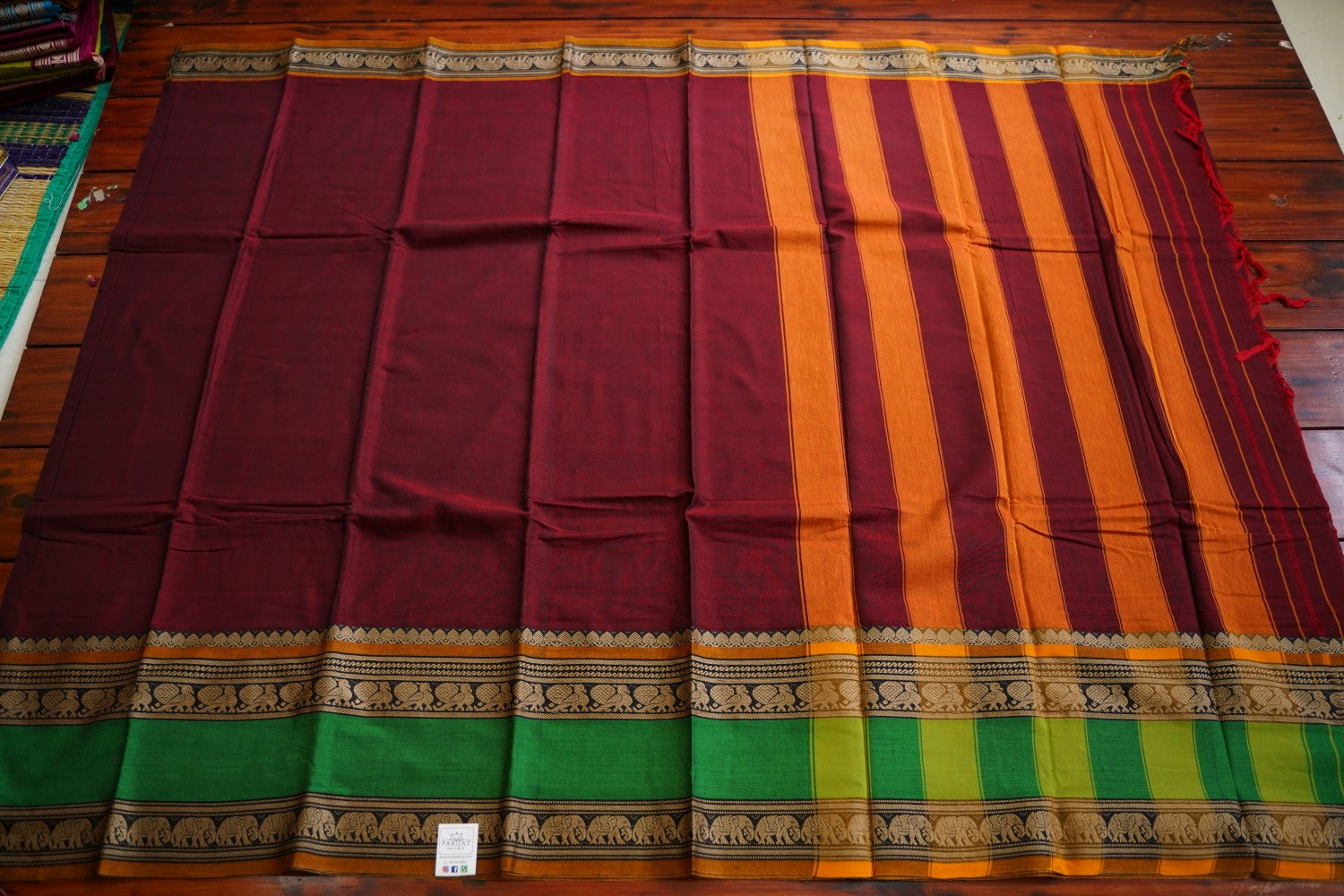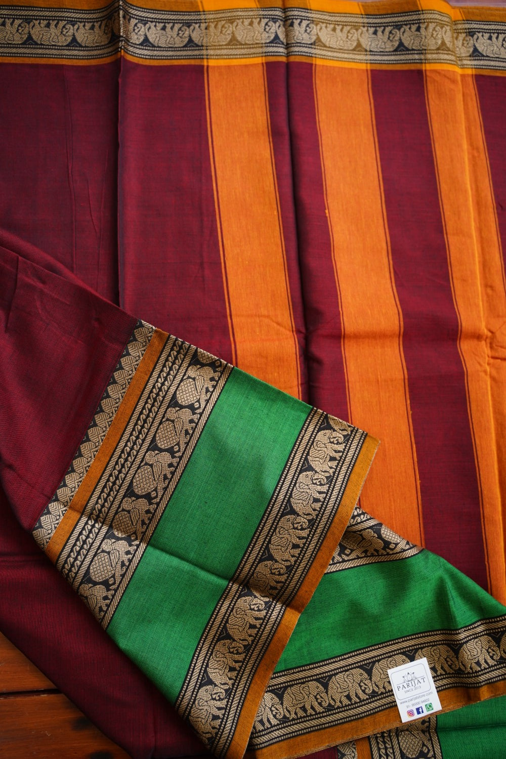 Maroon Red Narayanapet handloom Cotton Saree with Thread border PC12780