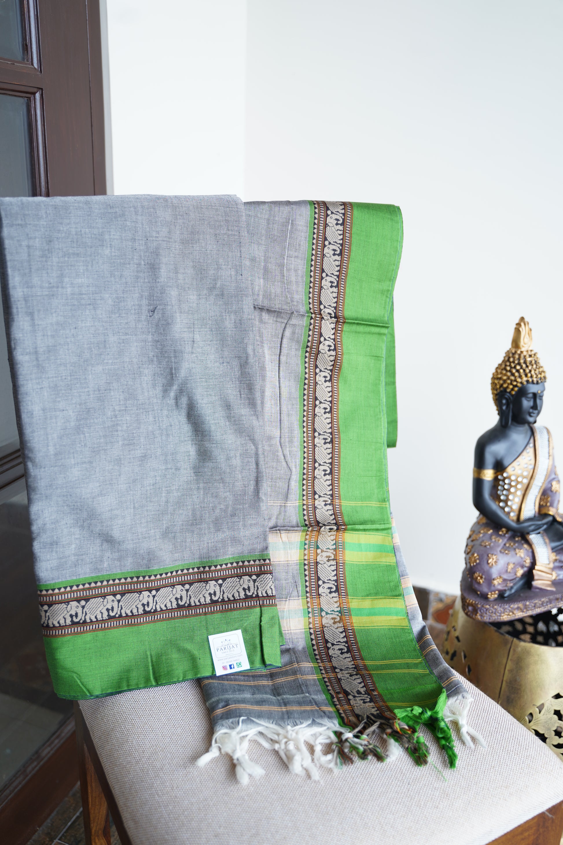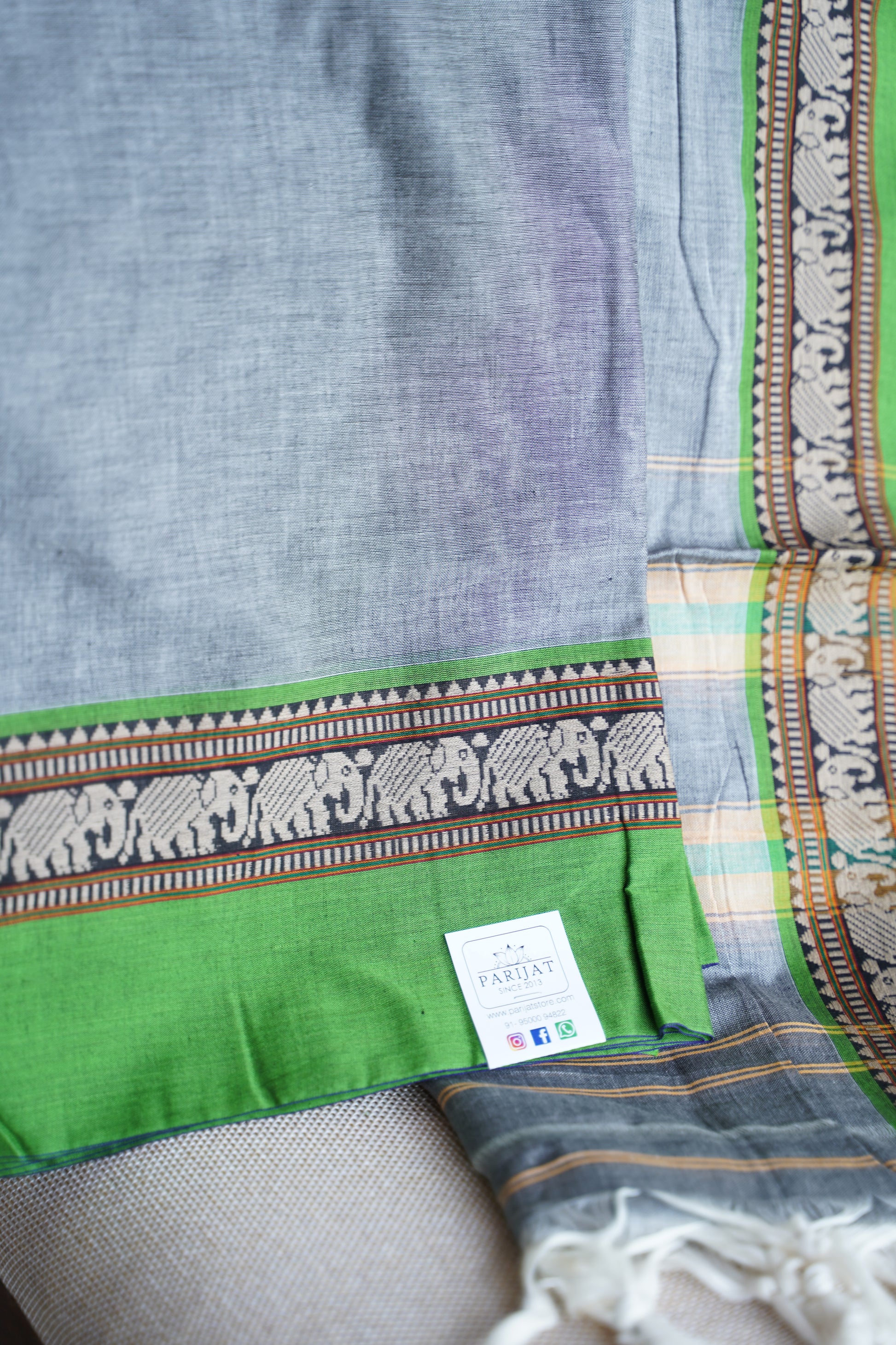 All Saree Photos are taken under sunlight. We do not modify the Pictures Digitally. Utmost Care and Effort is taken to achieve the exact colors of the sarees in the Pictures. All Pictures are intended to be best viewed on High Resolution Displays. The color rendition of the products may vary according to the ambient lighting conditions and the color calibration of digital LED devices. If you would like more clarity before your purchase, please contact us at +91 95000 94822 (Mon - Sat 9:30 am to 8:30 pm IST) or email us at parijatcollections@gmail.com