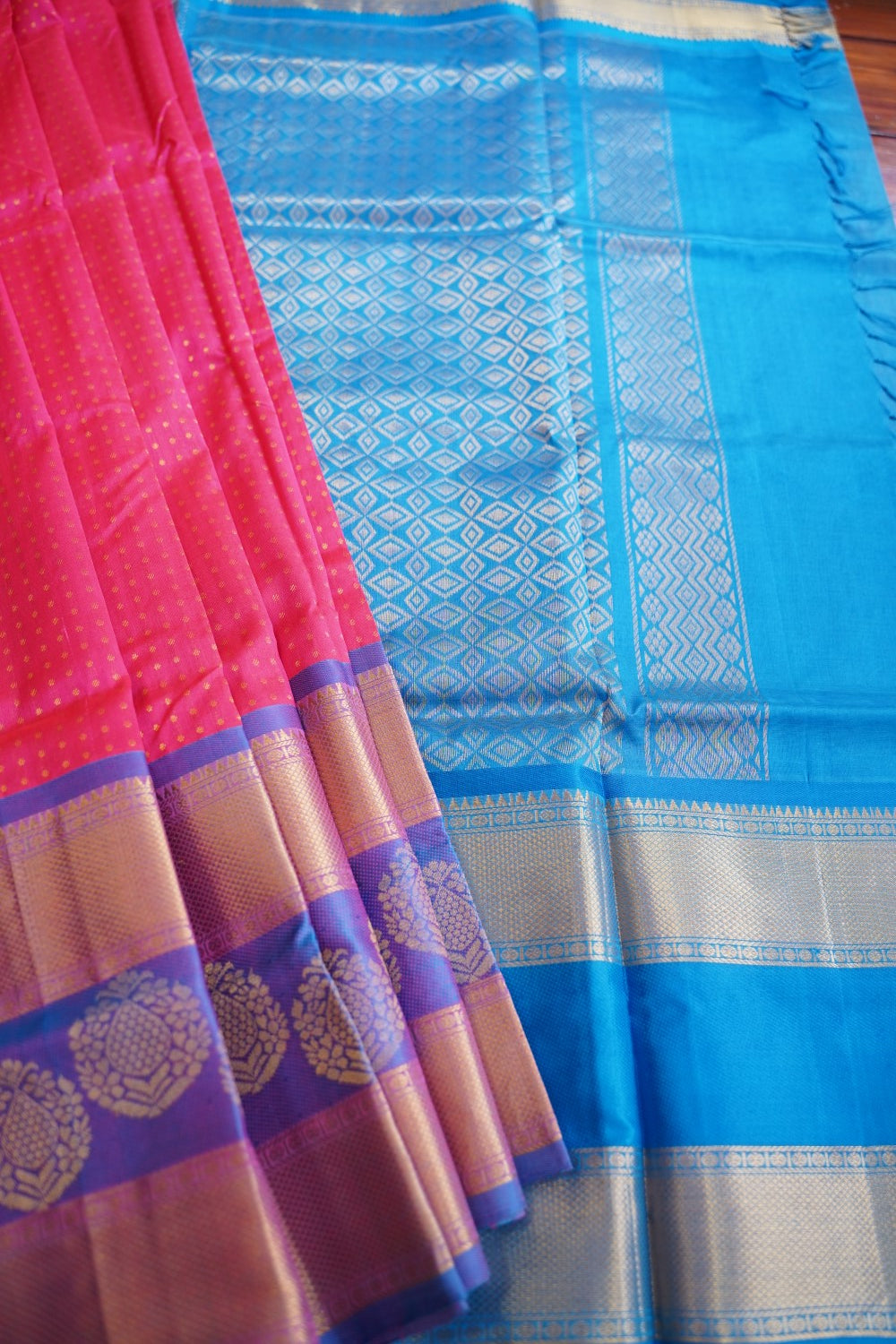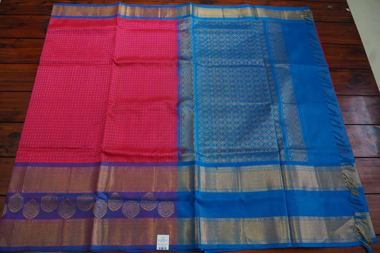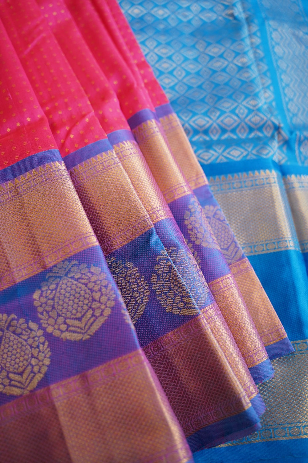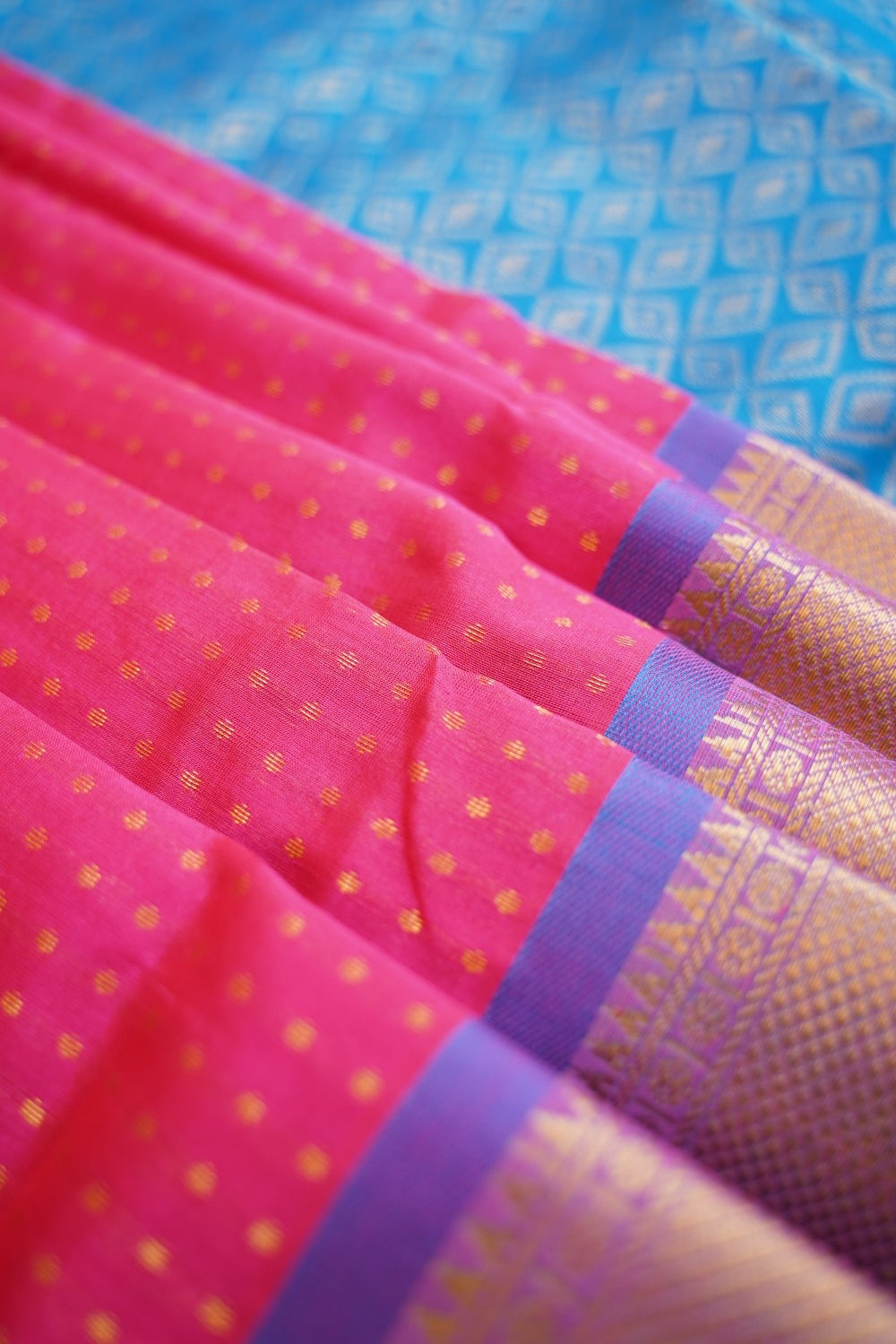 Pink Kanchi Silk Cotton Saree With Zari Border PC11072