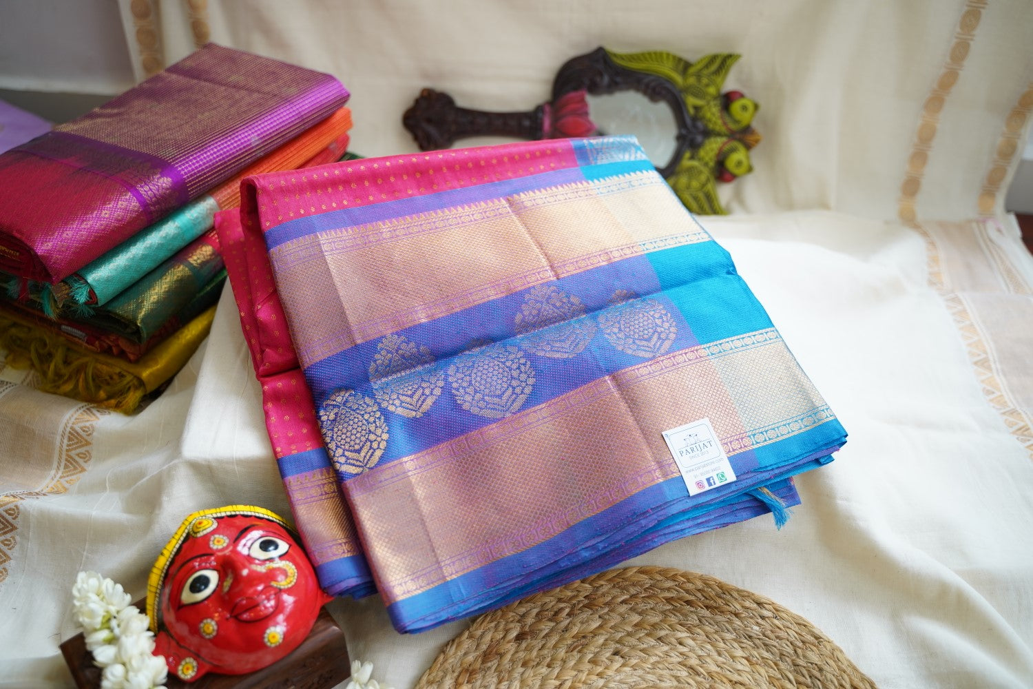 All Saree Photos are taken under sunlight. We do not modify the Pictures Digitally. Utmost Care and Effort is taken to achieve the exact colors of the sarees in the Pictures. All Pictures are intended to be best viewed on High Resolution Displays. The color rendition of the products may vary according to the ambient lighting conditions and the color calibration of digital LED devices. If you would like more clarity before your purchase, please contact us at +91 95000 94822 (Mon - Sat 9:30 am to 8:30 pm IST) or email us at parijatcollections@gmail.com