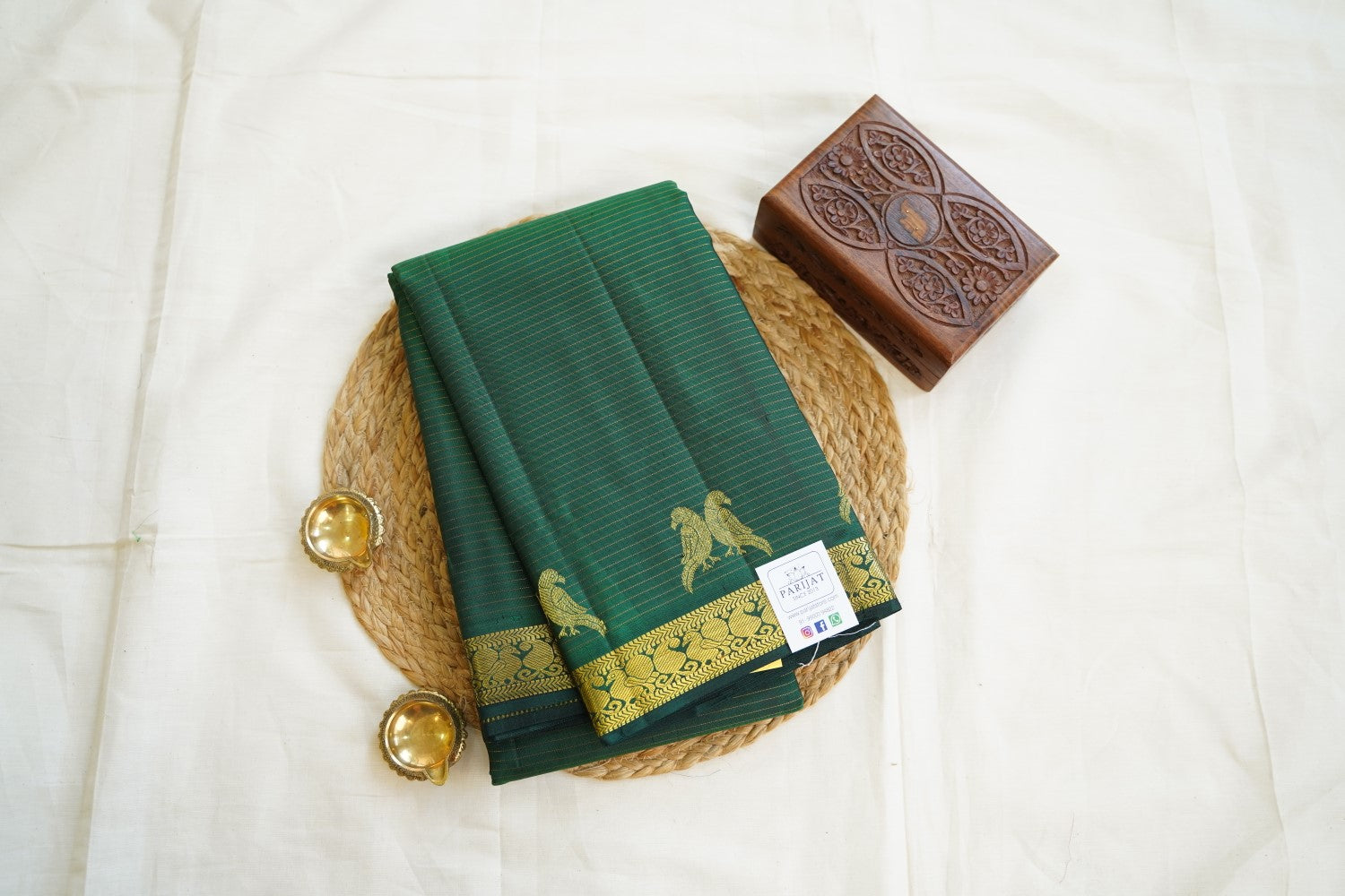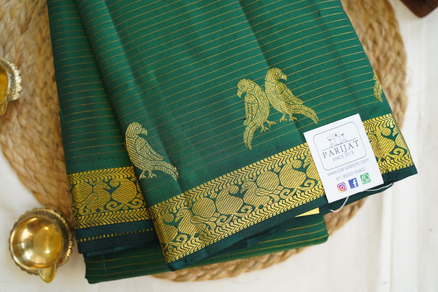 All Saree Photos are taken under sunlight. We do not modify the Pictures Digitally. Utmost Care and Effort is taken to achieve the exact colors of the sarees in the Pictures. All Pictures are intended to be best viewed on High Resolution Displays. The color rendition of the products may vary according to the ambient lighting conditions and the color calibration of digital LED devices. If you would like more clarity before your purchase, please contact us at +91 95000 94822 (Mon - Sat 9:30 am to 8:30 pm IST) or email us at parijatcollections@gmail.com