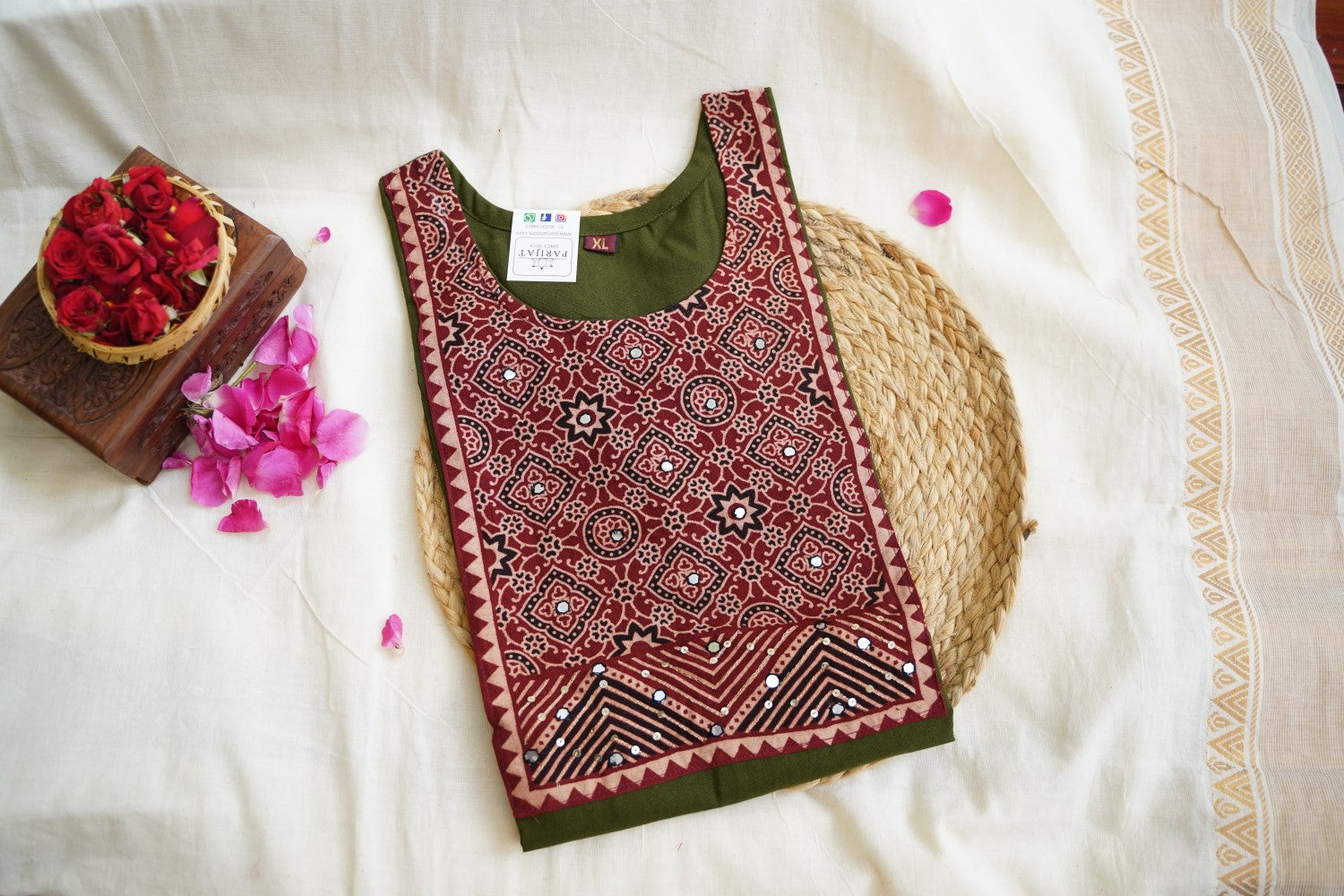 For Silk & Silk Cotton Sarees, Always dry clean for the first wash. For subsequent washes, if dry cleaning is not possible, gently hand wash in cold water with soapnut or silk-suitable detergent or baby shampoo.