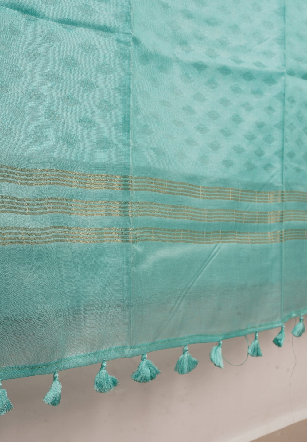 Always air dry the saree in shade. Never wring the sari or use it in the washing machine or dryer. Never rub the sari vigorously.
