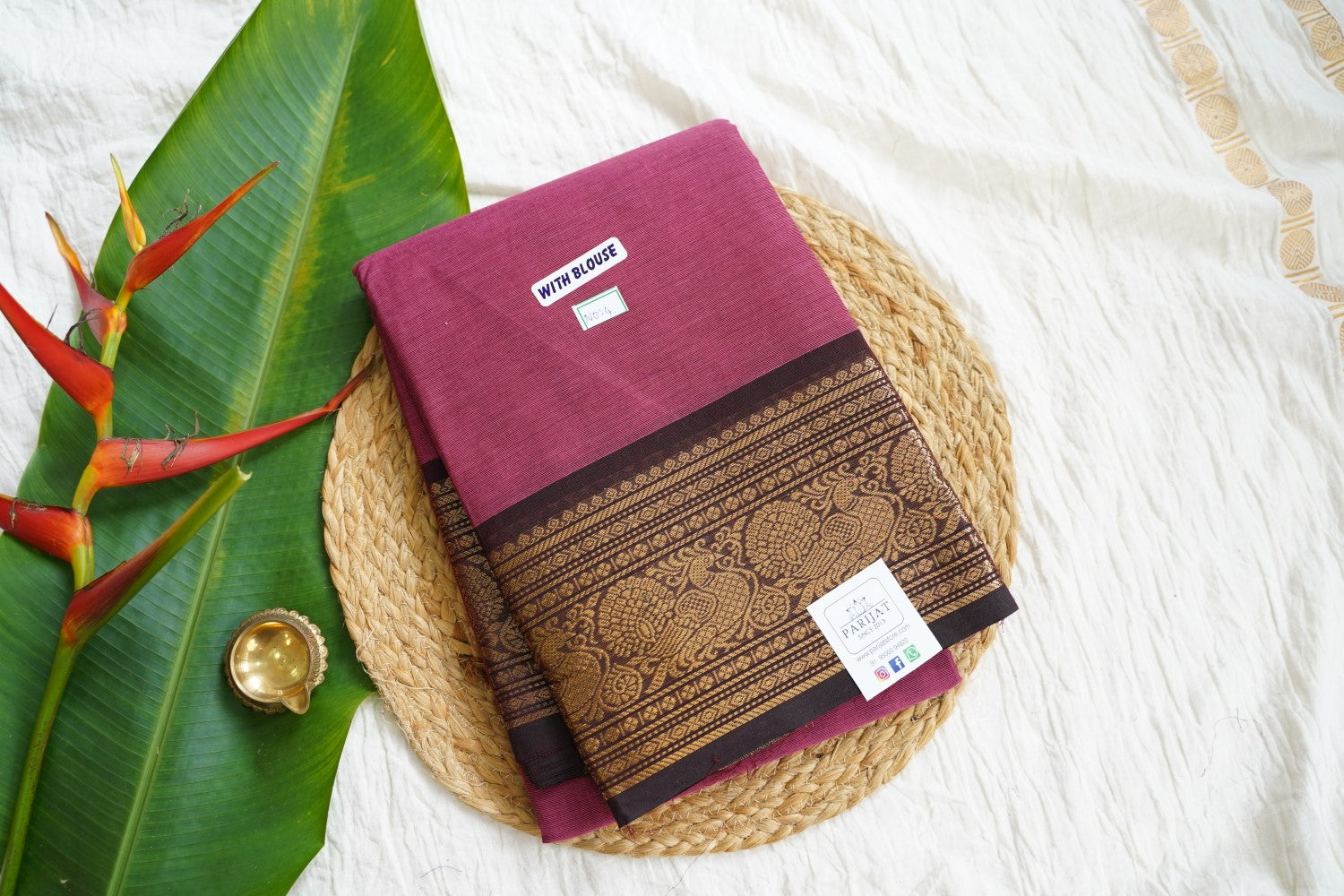 All Saree Photos are taken under sunlight. We do not modify the Pictures Digitally. Utmost Care and Effort is taken to achieve the exact colors of the sarees in the Pictures. All Pictures are intended to be best viewed on High Resolution Displays. The color rendition of the products may vary according to the ambient lighting conditions and the color calibration of digital LED devices. If you would like more clarity before your purchase, please contact us at +91 95000 94822 (Mon - Sat 9:30 am to 8:30 pm IST) or email us at parijatcollections@gmail.com