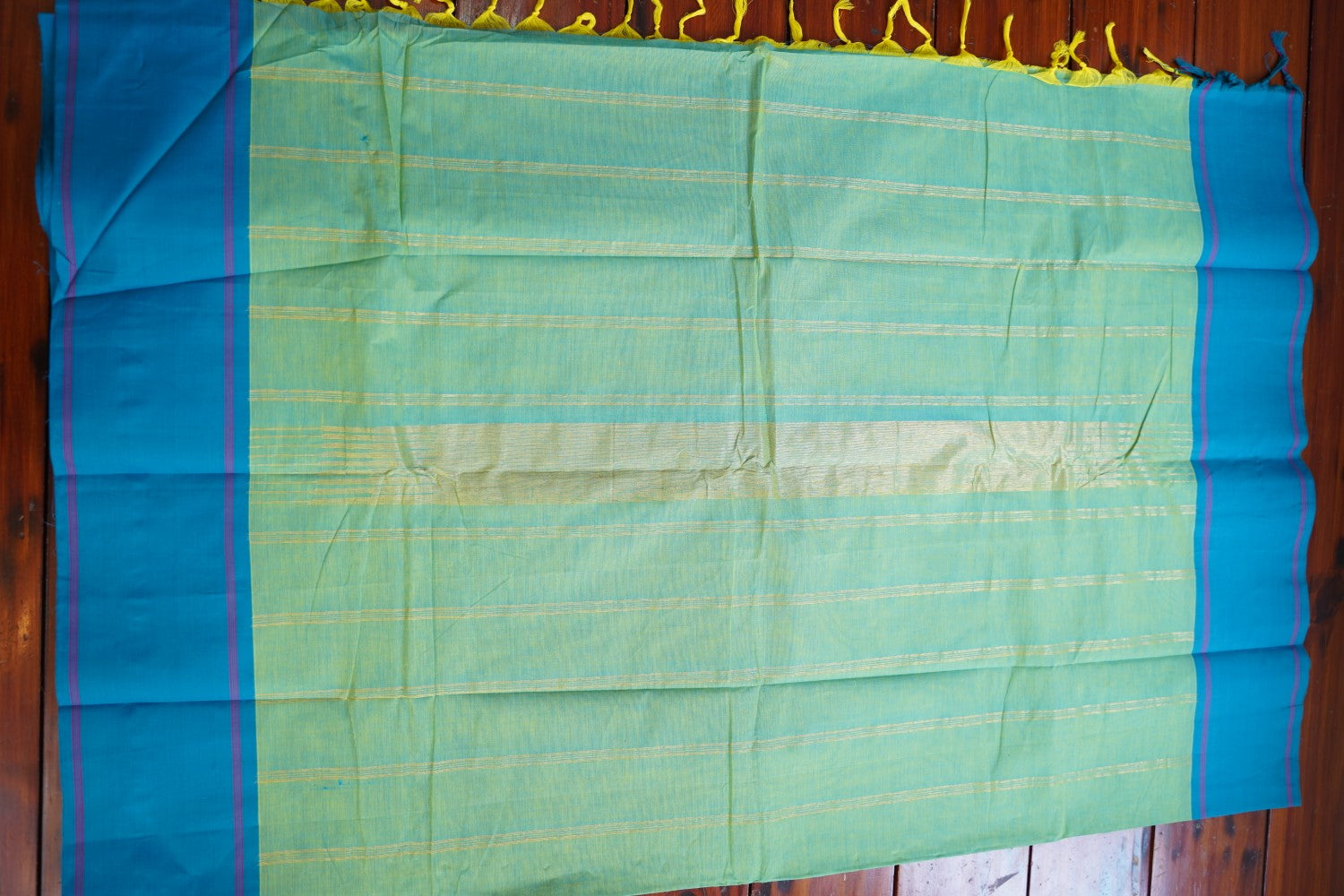 Always air dry the saree in shade. Never wring the sari or use it in the washing machine or dryer. Never rub the sari vigorously.