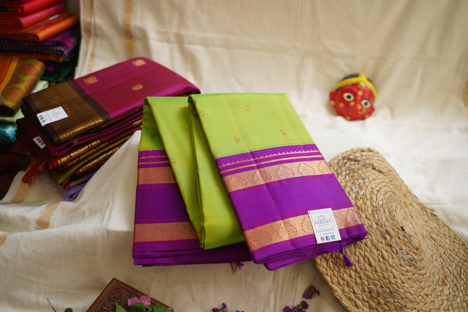 All Saree Photos are taken under sunlight. We do not modify the Pictures Digitally. Utmost Care and Effort is taken to achieve the exact colors of the sarees in the Pictures. All Pictures are intended to be best viewed on High Resolution Displays. The color rendition of the products may vary according to the ambient lighting conditions and the color calibration of digital LED devices. If you would like more clarity before your purchase, please contact us at +91 95000 94822 (Mon - Sat 9:30 am to 8:30 pm IST) or email us at parijatcollections@gmail.com