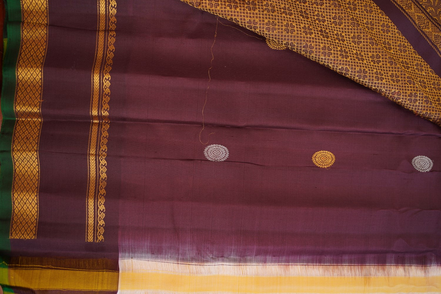 For Silk & Silk Cotton Sarees, Always dry clean for the first wash. For subsequent washes, if dry cleaning is not possible, gently hand wash in cold water with soapnut or silk-suitable detergent or baby shampoo.