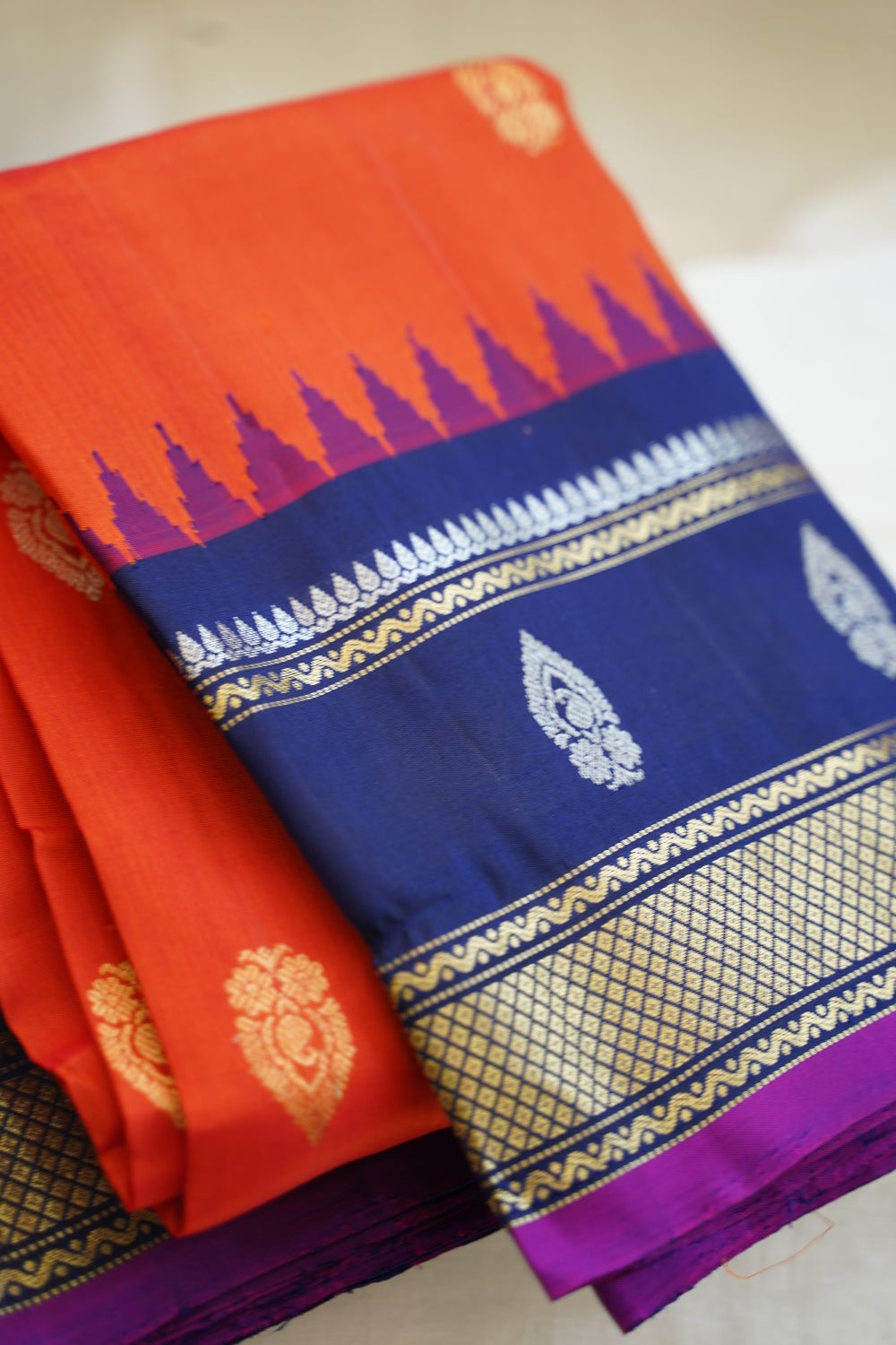 For Silk & Silk Cotton Sarees, Always dry clean for the first wash. For subsequent washes, if dry cleaning is not possible, gently hand wash in cold water with soapnut or silk-suitable detergent or baby shampoo.