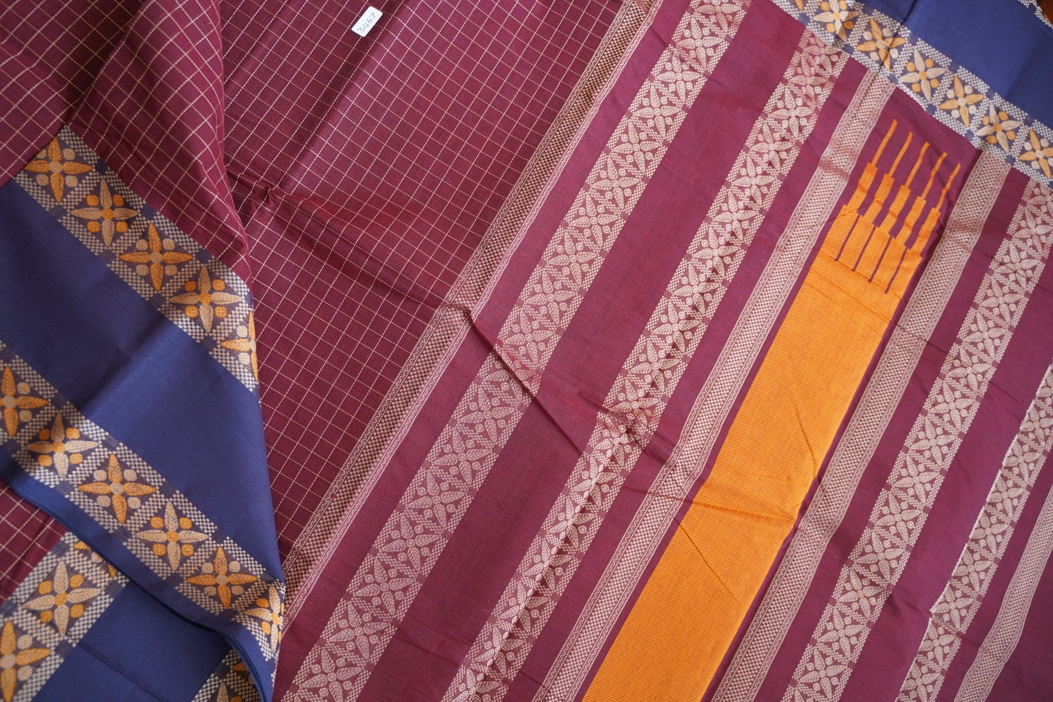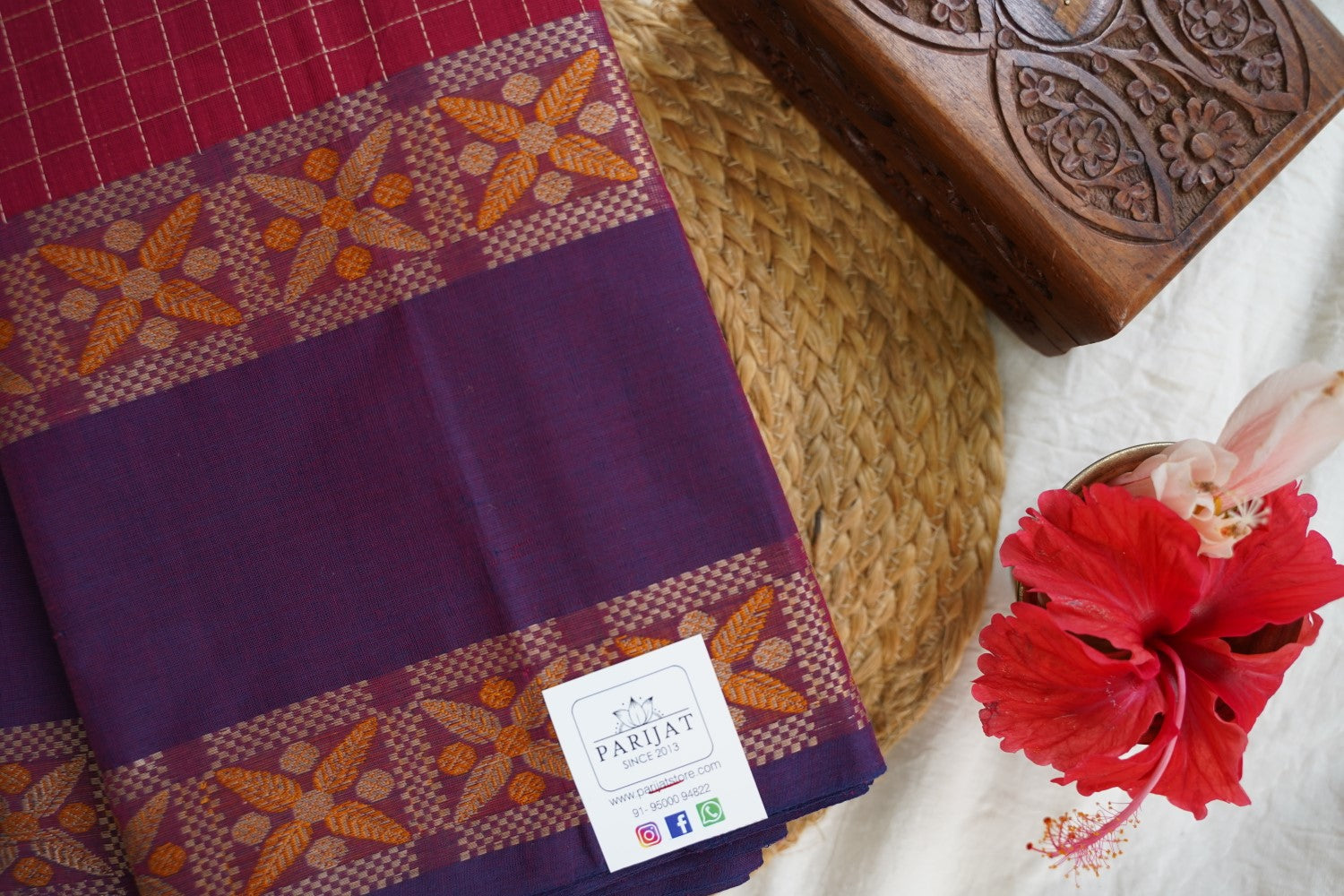 For Silk & Silk Cotton Sarees, Always dry clean for the first wash. For subsequent washes, if dry cleaning is not possible, gently hand wash in cold water with soapnut or silk-suitable detergent or baby shampoo.