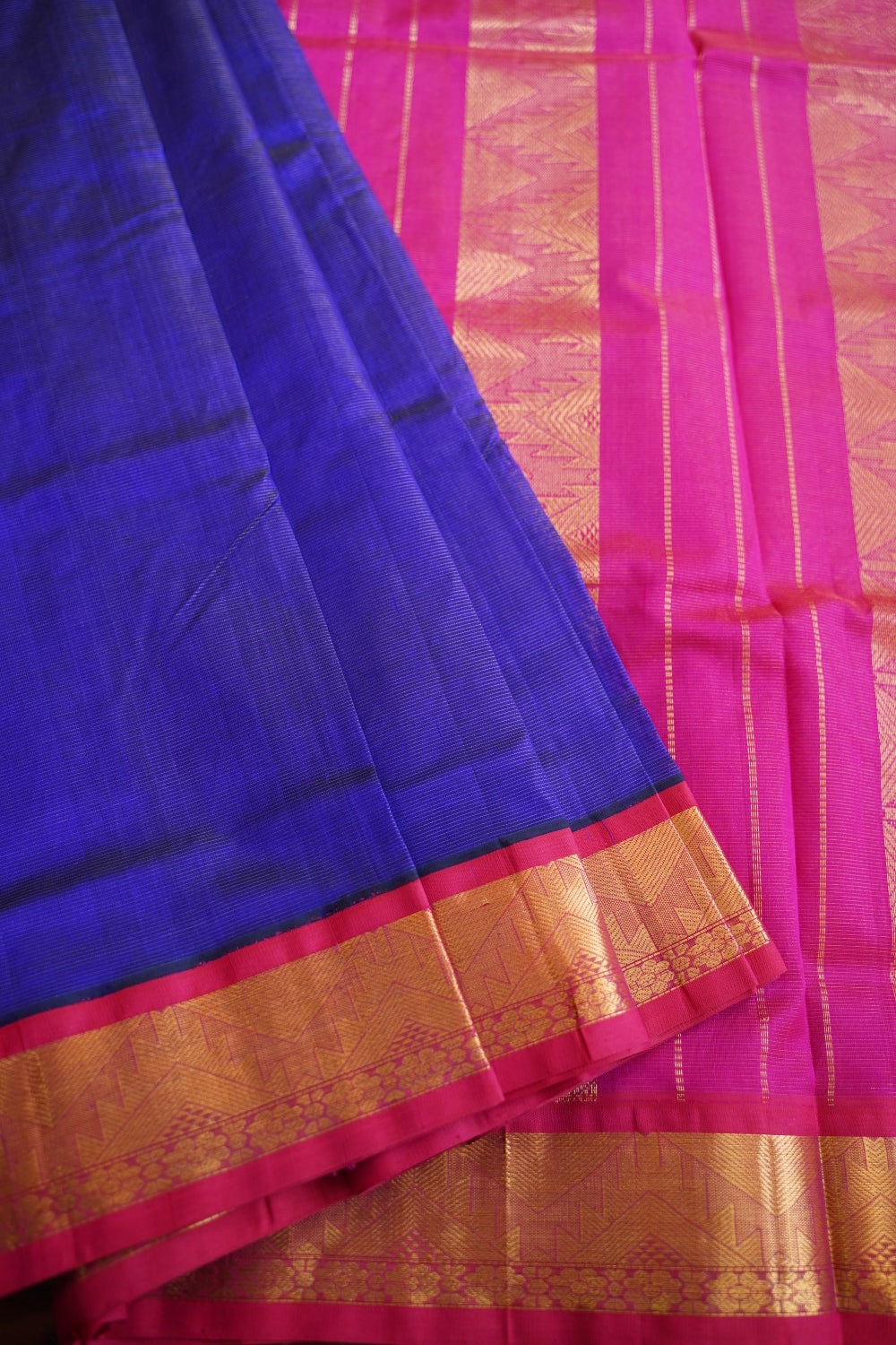 Always air dry the saree in shade. Never wring the sari or use it in the washing machine or dryer. Never rub the sari vigorously.