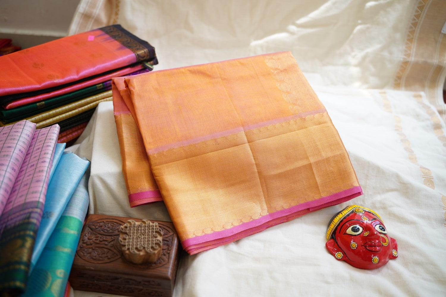 For Silk & Silk Cotton Sarees, Always dry clean for the first wash. For subsequent washes, if dry cleaning is not possible, gently hand wash in cold water with soapnut or silk-suitable detergent or baby shampoo.