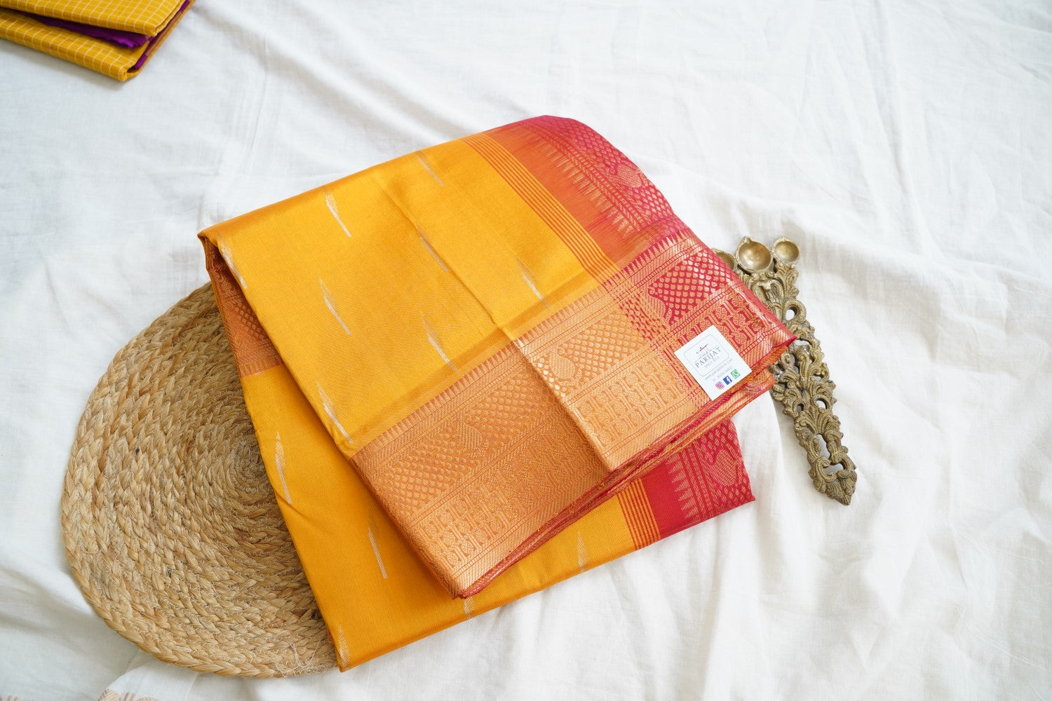 For Silk & Silk Cotton Sarees, Always dry clean for the first wash. For subsequent washes, if dry cleaning is not possible, gently hand wash in cold water with soapnut or silk-suitable detergent or baby shampoo.
