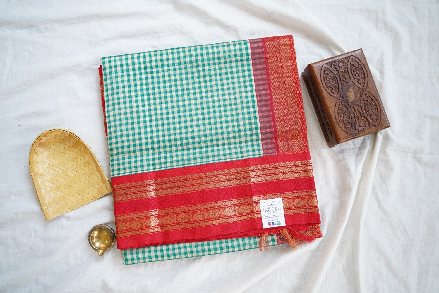 All Saree Photos are taken under sunlight. We do not modify the Pictures Digitally. Utmost Care and Effort is taken to achieve the exact colors of the sarees in the Pictures. All Pictures are intended to be best viewed on High Resolution Displays. The color rendition of the products may vary according to the ambient lighting conditions and the color calibration of digital LED devices. If you would like more clarity before your purchase, please contact us at +91 95000 94822 (Mon - Sat 9:30 am to 8:30 pm IST) or email us at parijatcollections@gmail.com