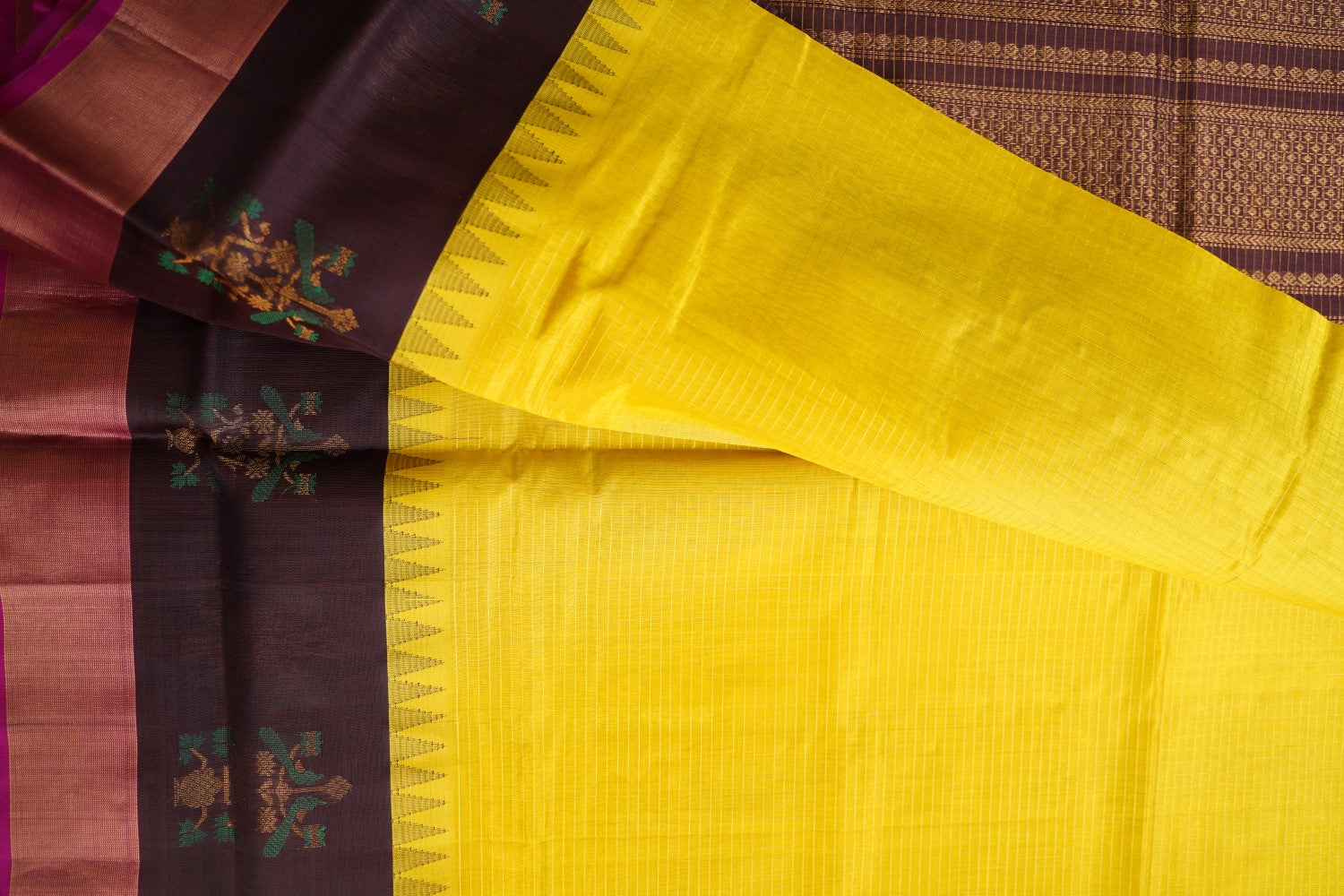For Silk & Silk Cotton Sarees, Always dry clean for the first wash. For subsequent washes, if dry cleaning is not possible, gently hand wash in cold water with soapnut or silk-suitable detergent or baby shampoo.