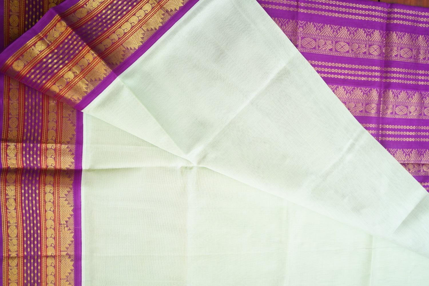 Always air dry the saree in shade. Never wring the sari or use it in the washing machine or dryer. Never rub the sari vigorously.