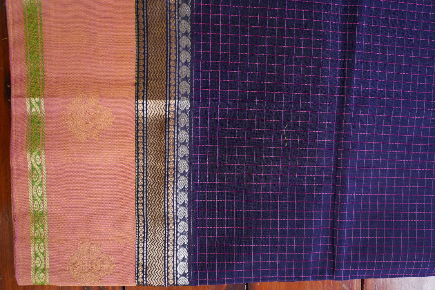 For Silk & Silk Cotton Sarees, Always dry clean for the first wash. For subsequent washes, if dry cleaning is not possible, gently hand wash in cold water with soapnut or silk-suitable detergent or baby shampoo.