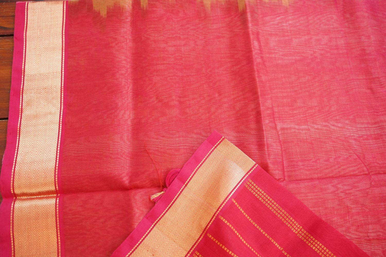 For Silk & Silk Cotton Sarees, Always dry clean for the first wash. For subsequent washes, if dry cleaning is not possible, gently hand wash in cold water with soapnut or silk-suitable detergent or baby shampoo.