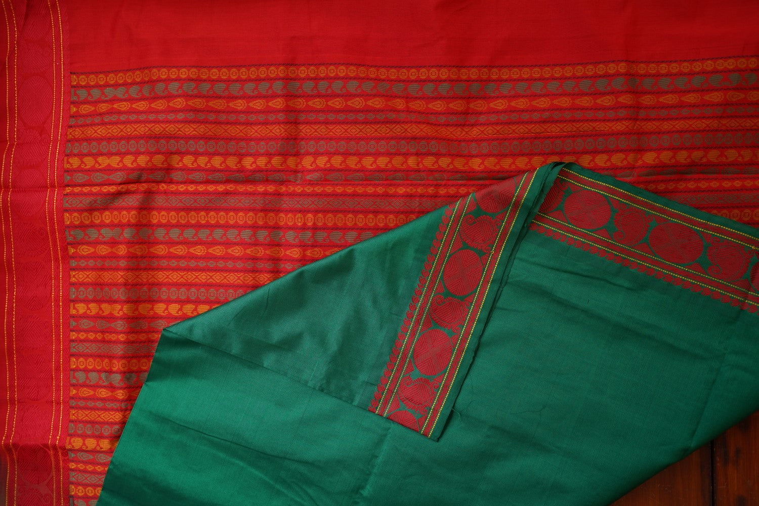 For Silk & Silk Cotton Sarees, Always dry clean for the first wash. For subsequent washes, if dry cleaning is not possible, gently hand wash in cold water with soapnut or silk-suitable detergent or baby shampoo.