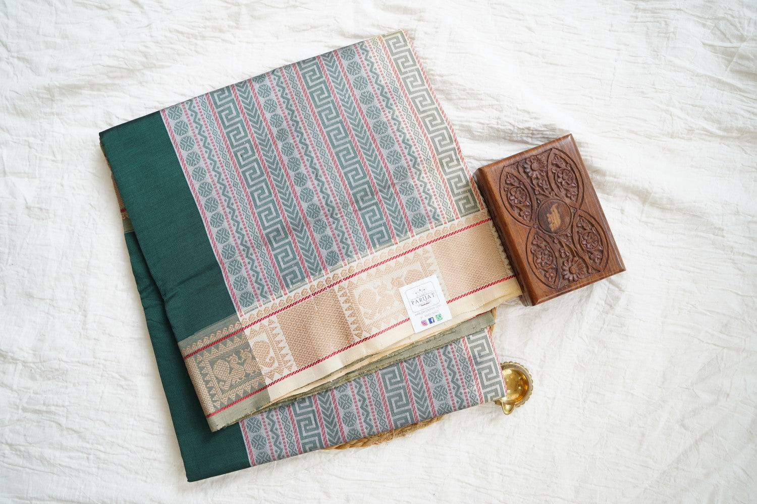 All Saree Photos are taken under sunlight. We do not modify the Pictures Digitally. Utmost Care and Effort is taken to achieve the exact colors of the sarees in the Pictures. All Pictures are intended to be best viewed on High Resolution Displays. The color rendition of the products may vary according to the ambient lighting conditions and the color calibration of digital LED devices. If you would like more clarity before your purchase, please contact us at +91 95000 94822 (Mon - Sat 9:30 am to 8:30 pm IST) or email us at parijatcollections@gmail.com