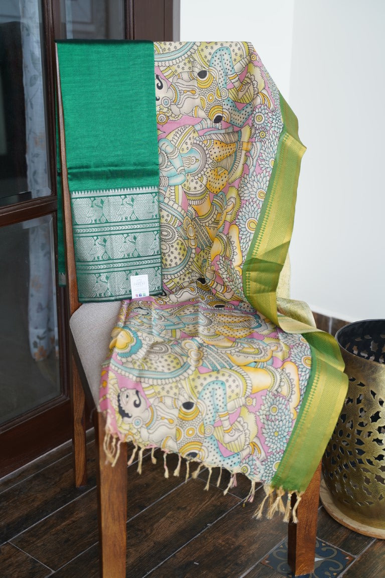 For Silk & Silk Cotton Sarees, Always dry clean for the first wash. For subsequent washes, if dry cleaning is not possible, gently hand wash in cold water with soapnut or silk-suitable detergent or baby shampoo.