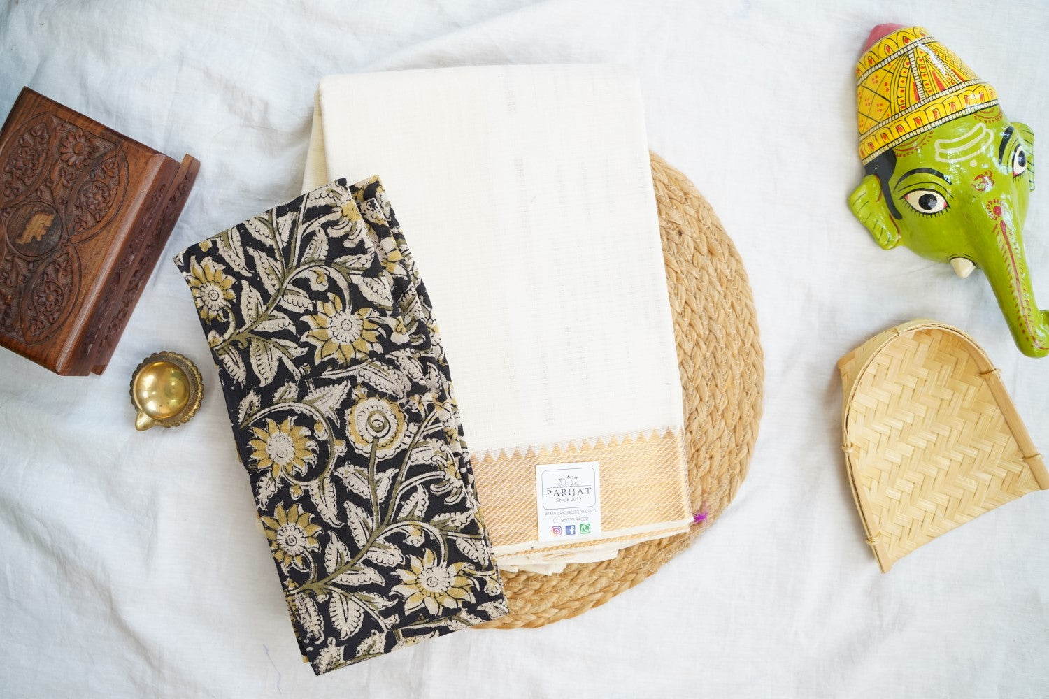 All Saree Photos are taken under sunlight. We do not modify the Pictures Digitally. Utmost Care and Effort is taken to achieve the exact colors of the sarees in the Pictures. All Pictures are intended to be best viewed on High Resolution Displays. The color rendition of the products may vary according to the ambient lighting conditions and the color calibration of digital LED devices. If you would like more clarity before your purchase, please contact us at +91 95000 94822 (Mon - Sat 9:30 am to 8:30 pm IST) or email us at parijatcollections@gmail.com