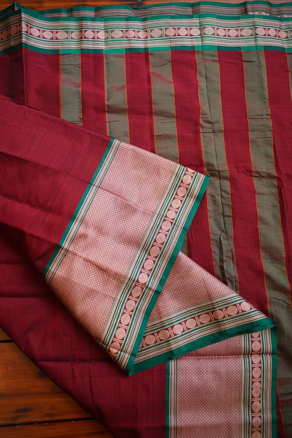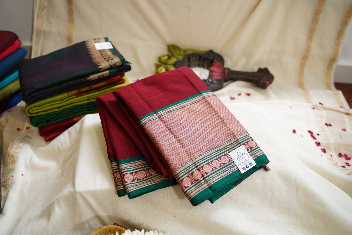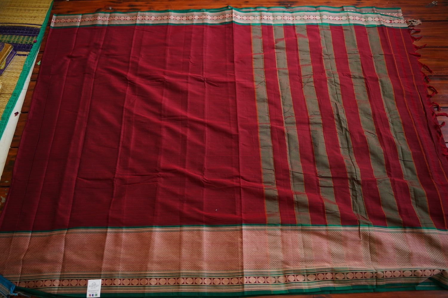 Maroon Red Narayanapet handloom Cotton Saree with Thread border PC12779