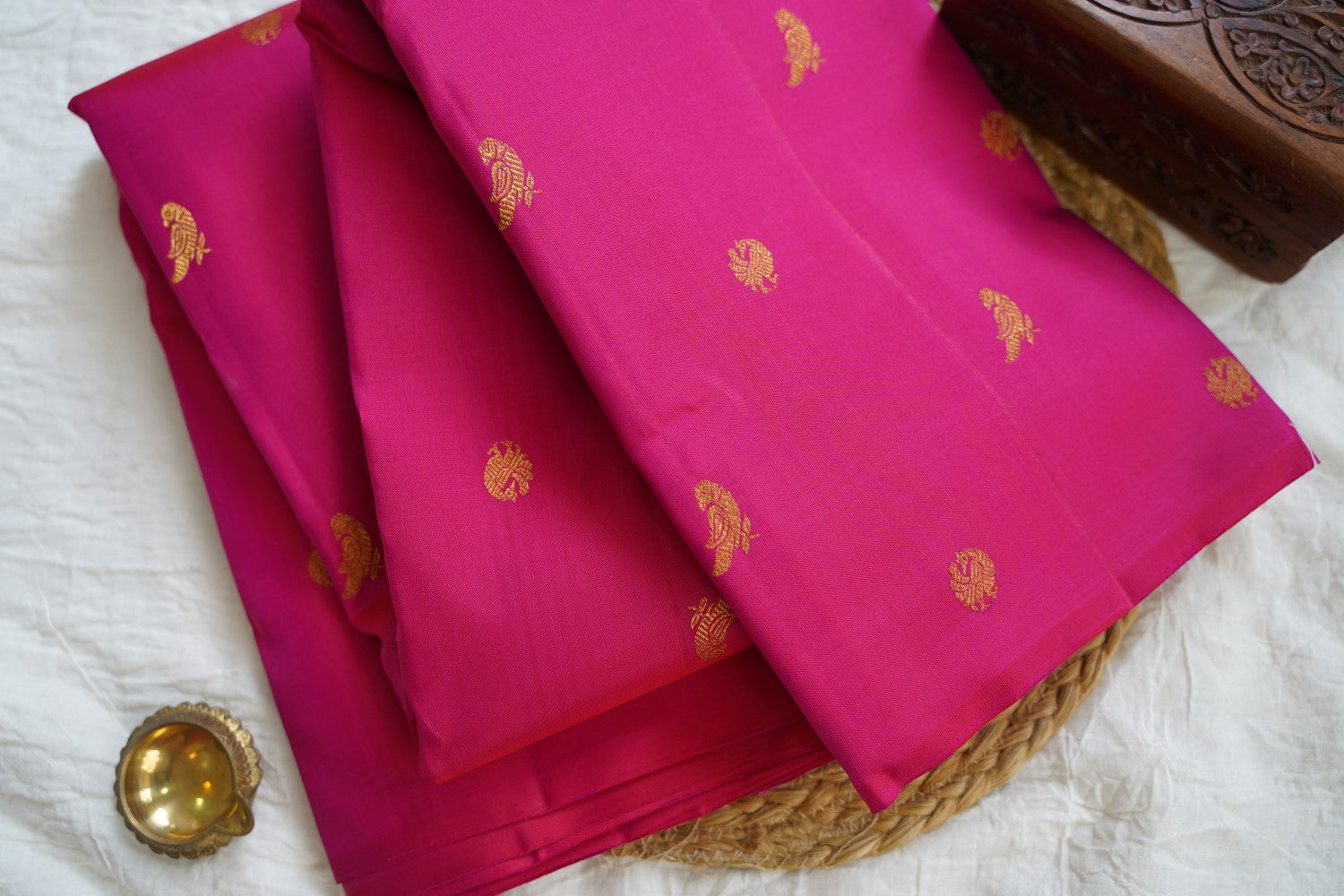 For Silk & Silk Cotton Sarees, Always dry clean for the first wash. For subsequent washes, if dry cleaning is not possible, gently hand wash in cold water with soapnut or silk-suitable detergent or baby shampoo.