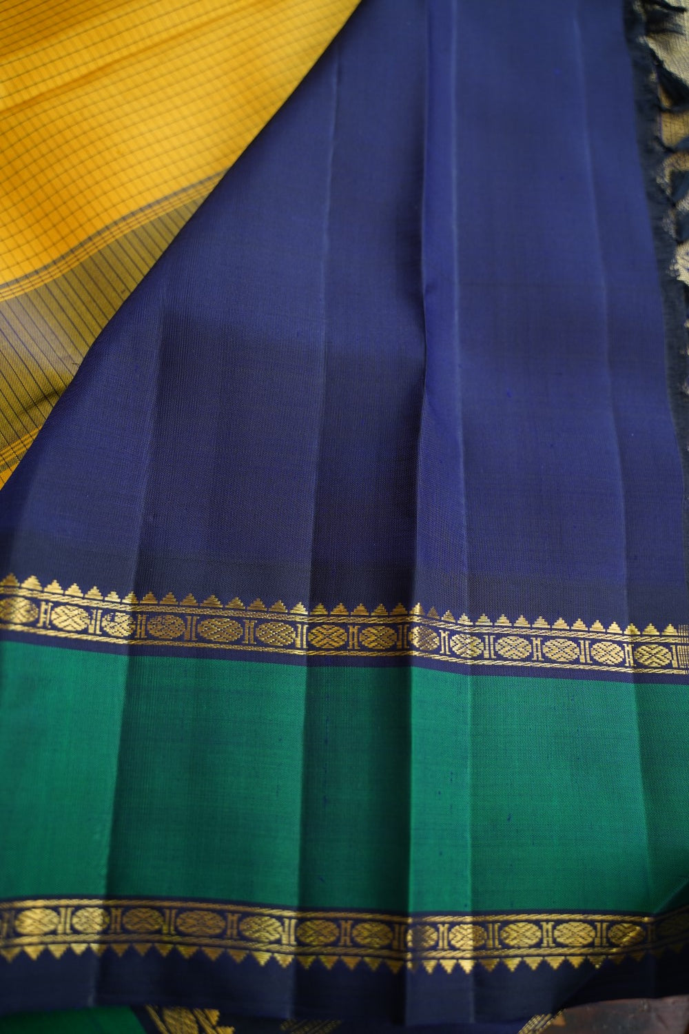 Always air dry the saree in shade. Never wring the sari or use it in the washing machine or dryer. Never rub the sari vigorously.