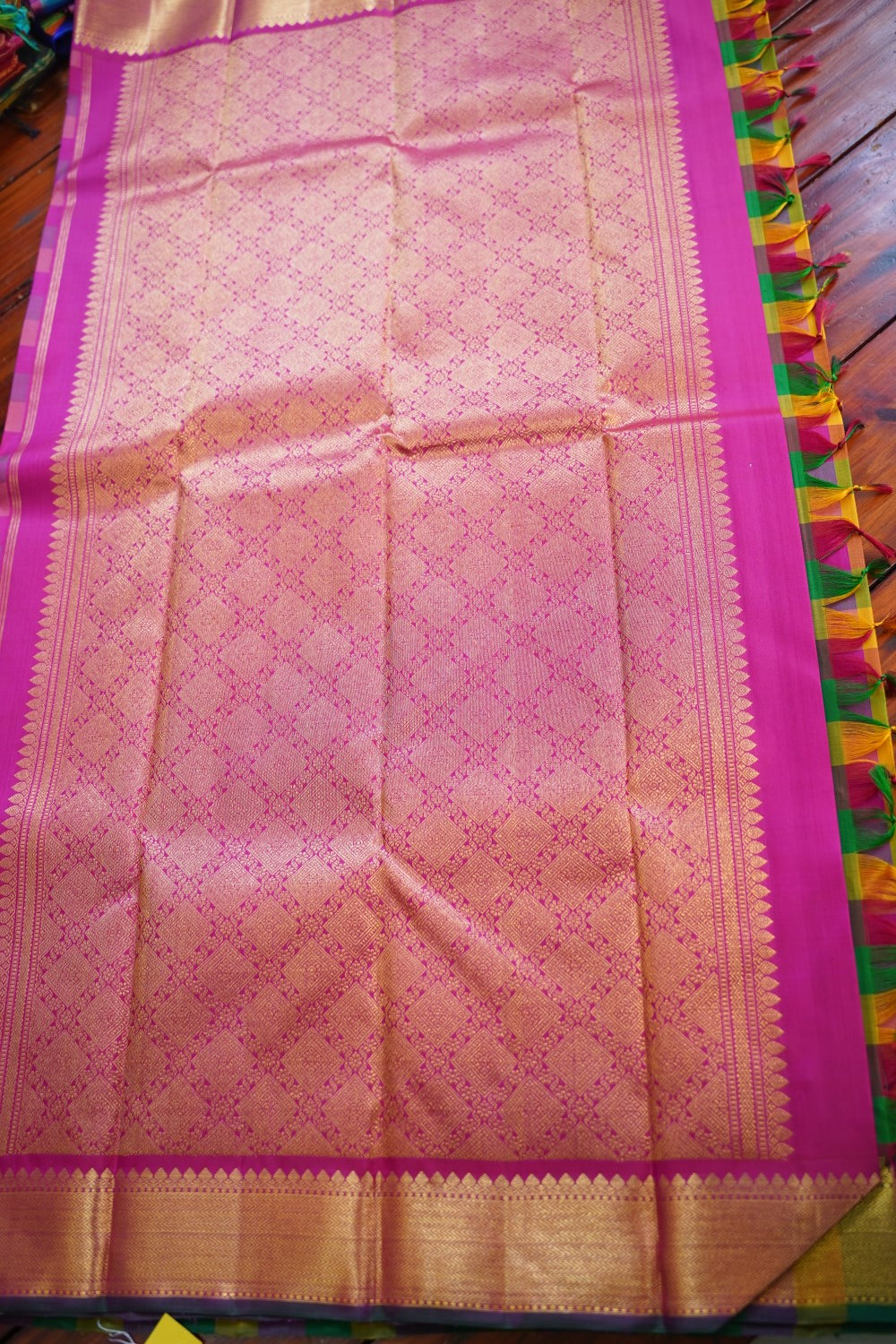 All Saree Photos are taken under sunlight. We do not modify the Pictures Digitally. Utmost Care and Effort is taken to achieve the exact colors of the sarees in the Pictures. All Pictures are intended to be best viewed on High Resolution Displays. The color rendition of the products may vary according to the ambient lighting conditions and the color calibration of digital LED devices. If you would like more clarity before your purchase, please contact us at +91 95000 94822 (Mon - Sat 9:30 am to 8:30 pm IST) or email us at parijatcollections@gmail.com
