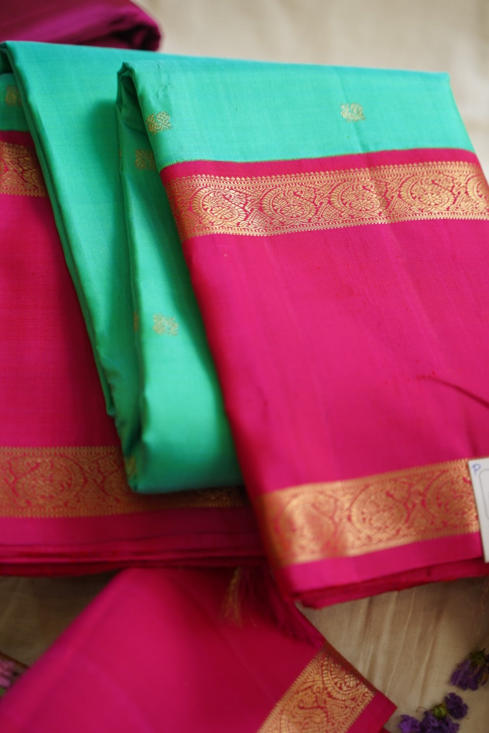 For Silk & Silk Cotton Sarees, Always dry clean for the first wash. For subsequent washes, if dry cleaning is not possible, gently hand wash in cold water with soapnut or silk-suitable detergent or baby shampoo.